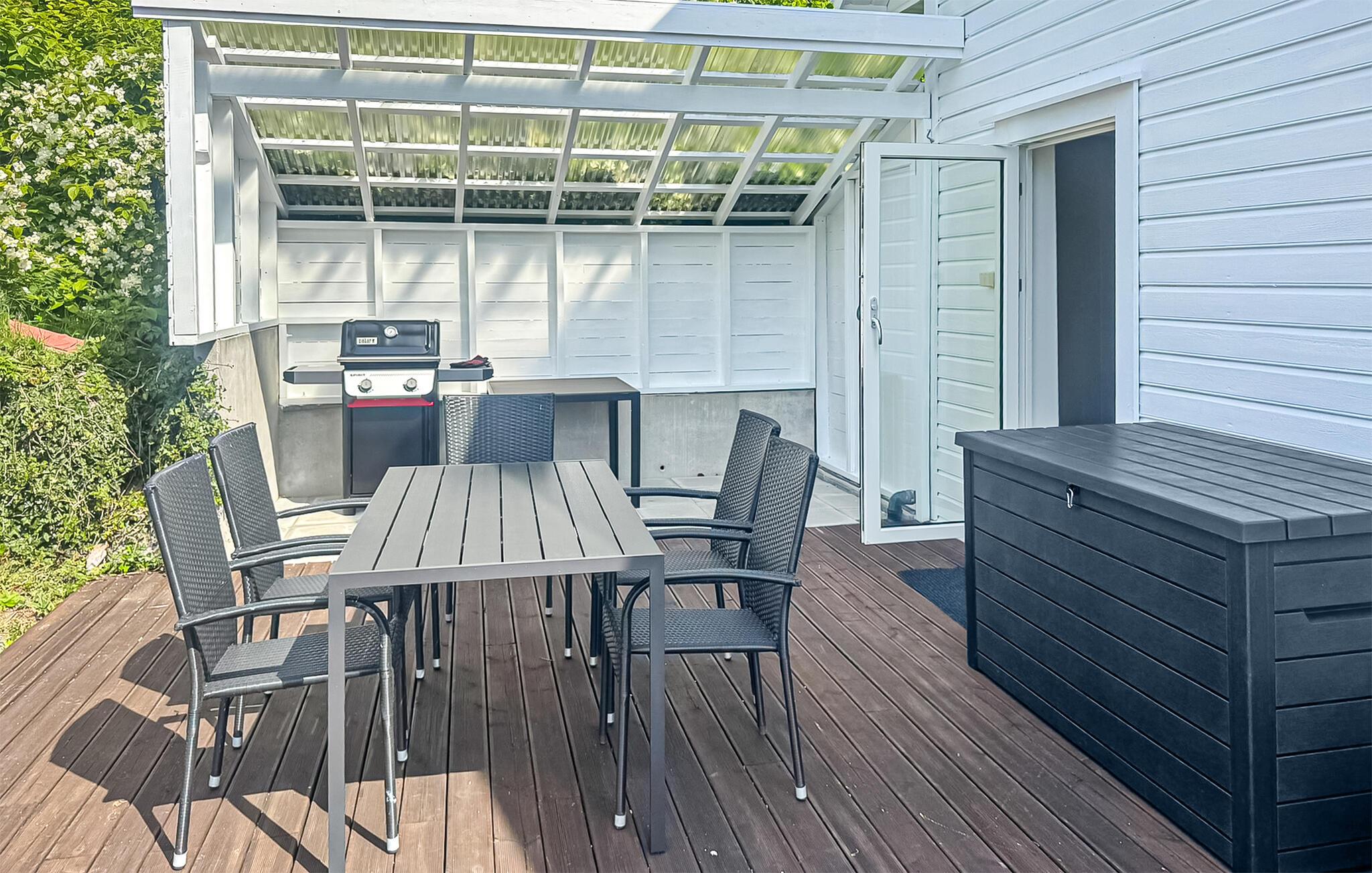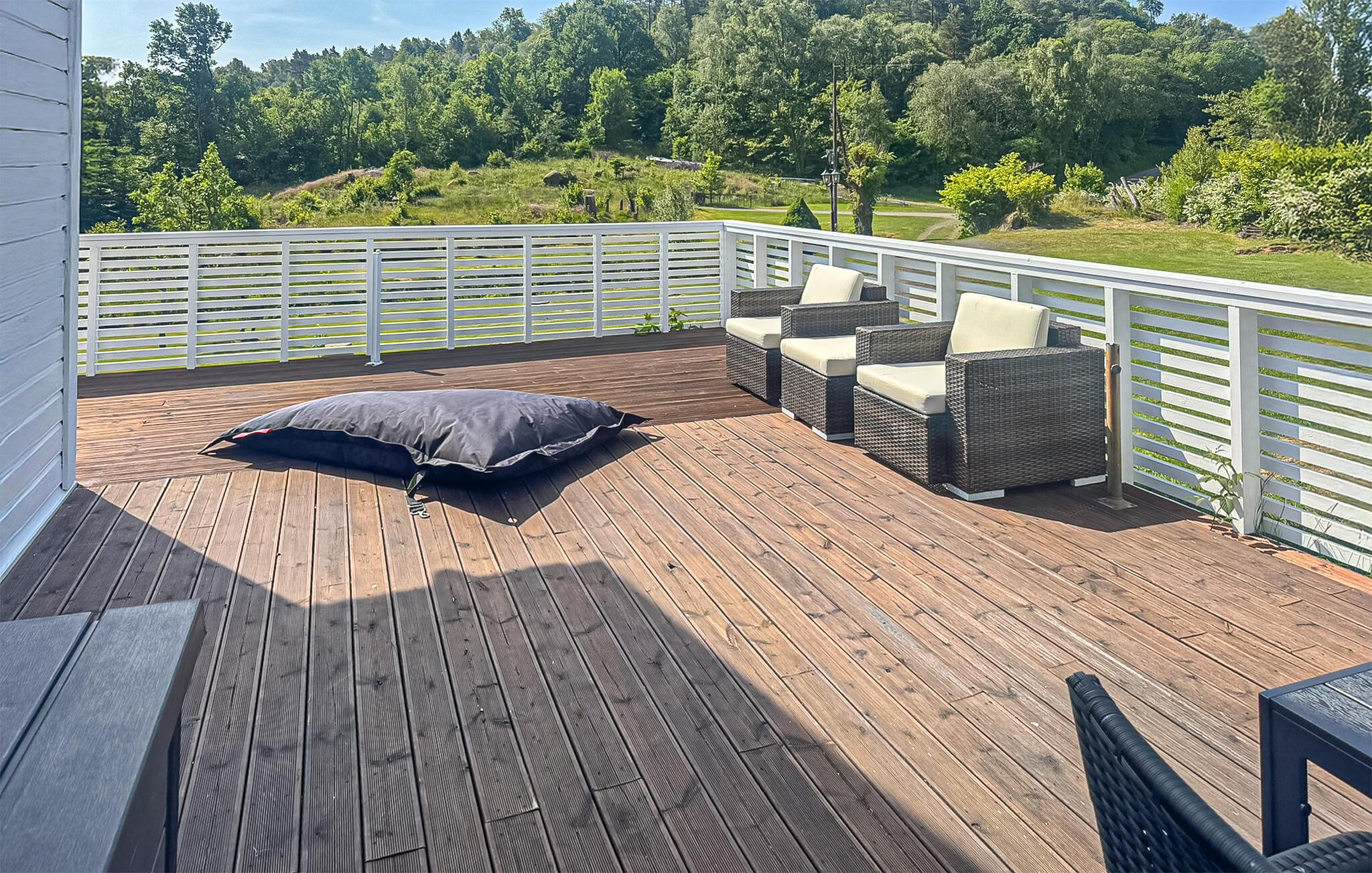 Fra terrassen i dette naturskønne hus har I en fantastisk udsigt over omgivelserne. Lyt til naturen eller saml jer om måltider tilberedt på grillen i haven. Afslut dagen med en god samtale og et glas vin.