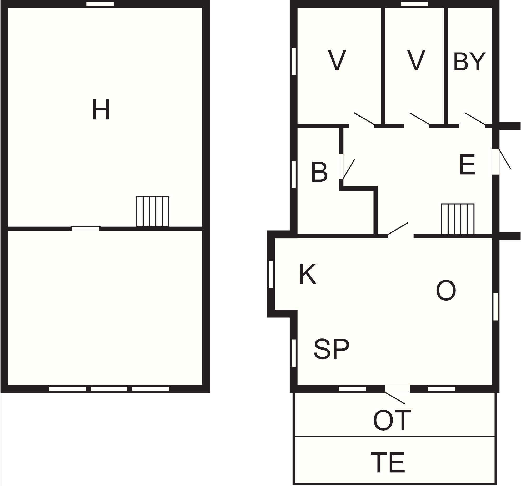 2 Soveværelser: (1DS)+(1S)