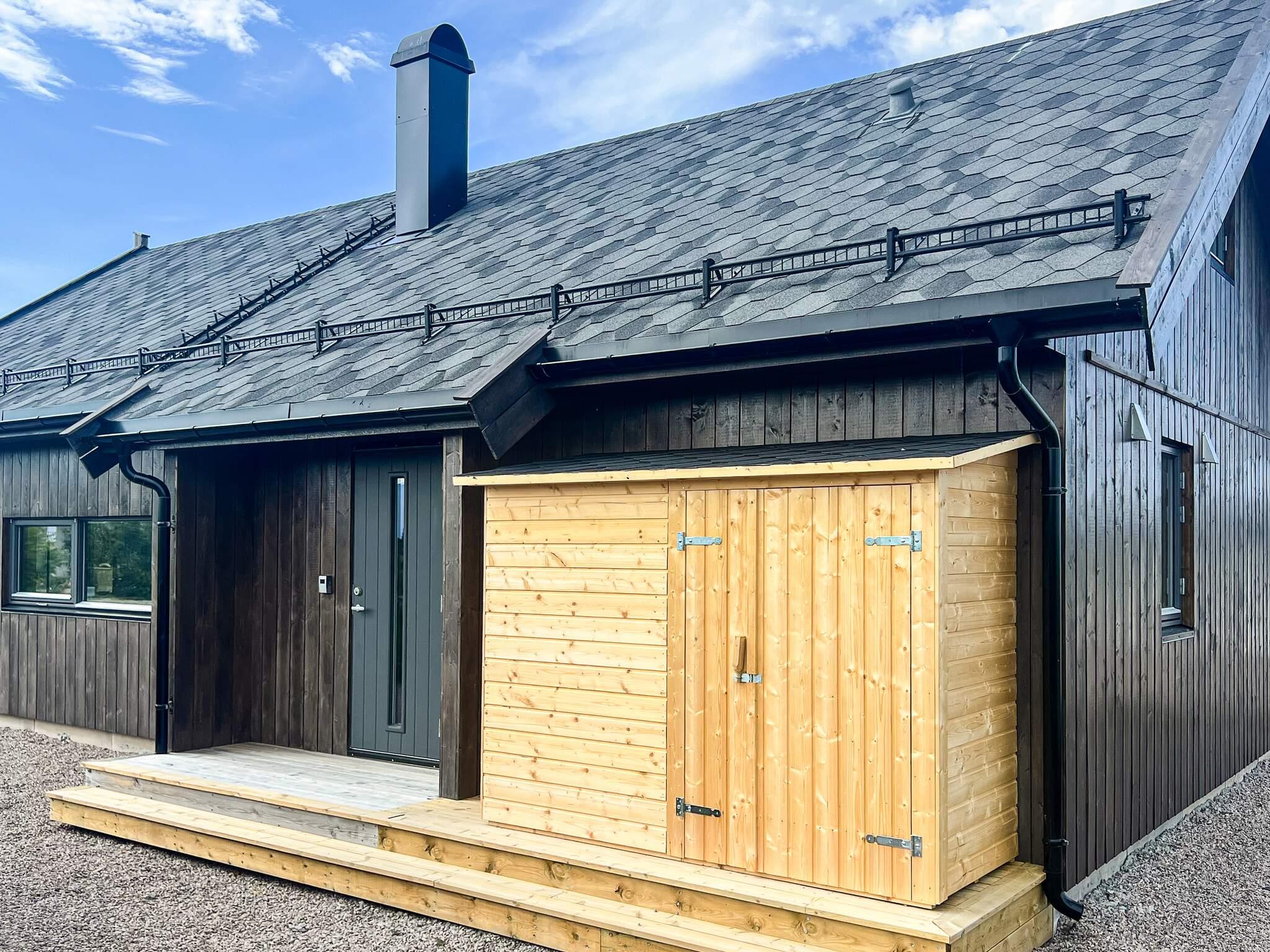 Felles fileteringsbenk ved båthavna. Egen bod bak feriehuset til oppbevaring av fiskeutstyr og fiskeklær m.m.