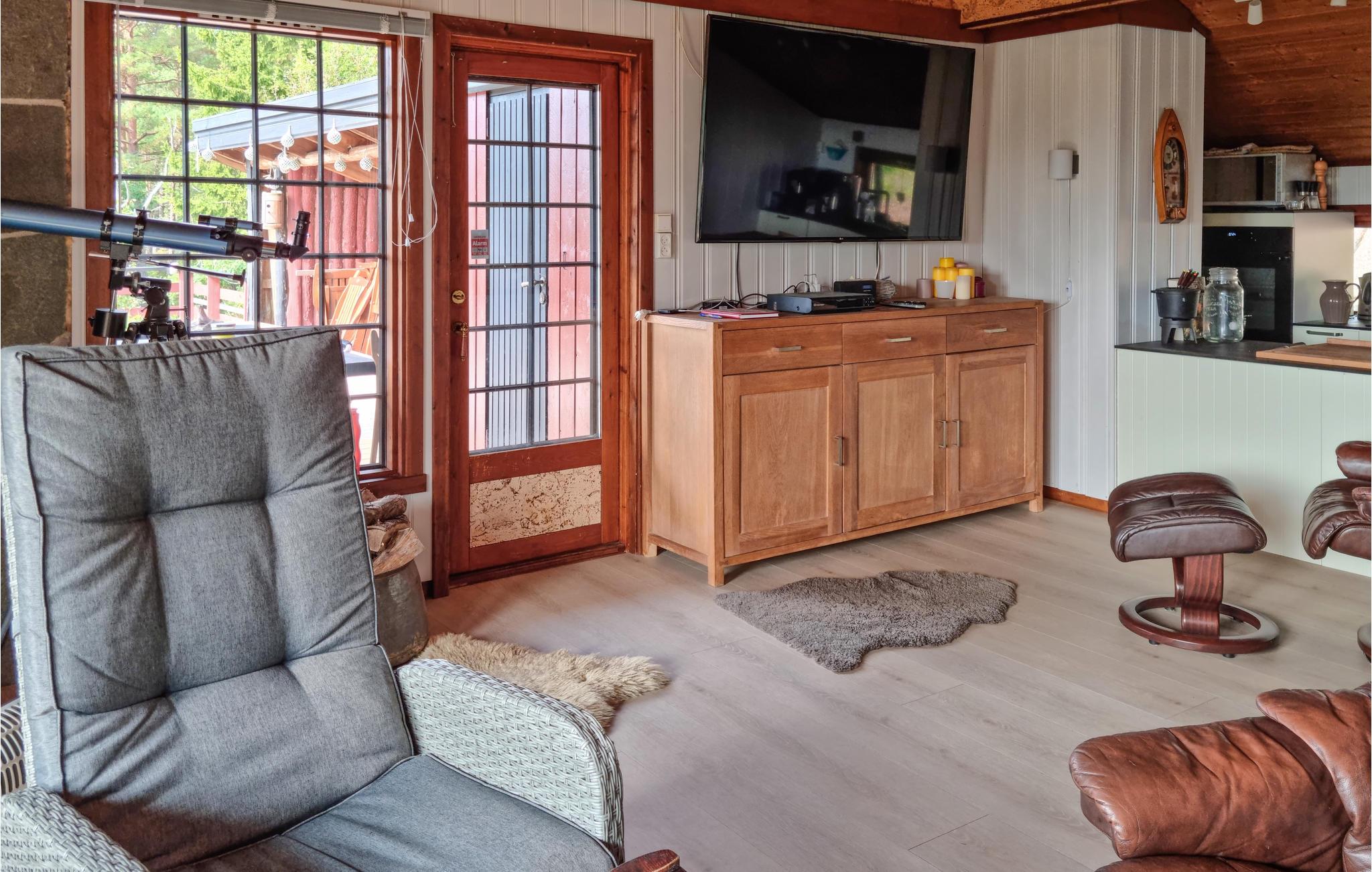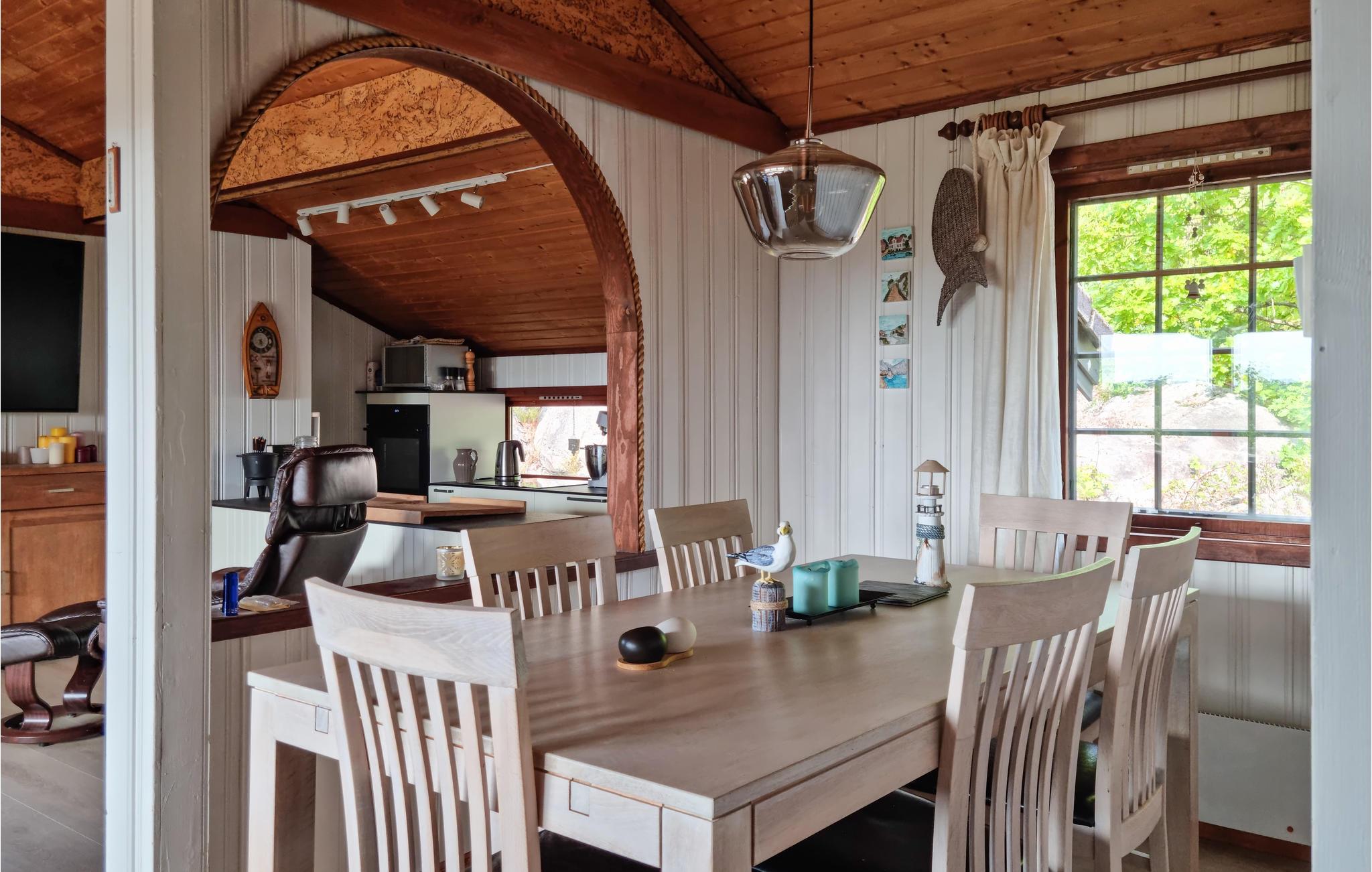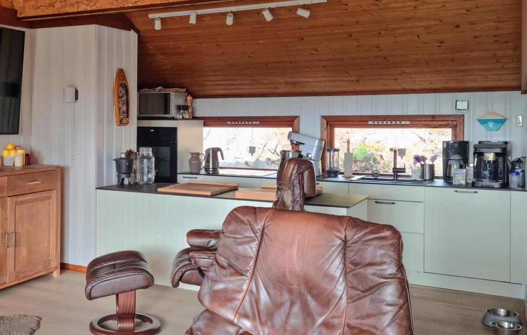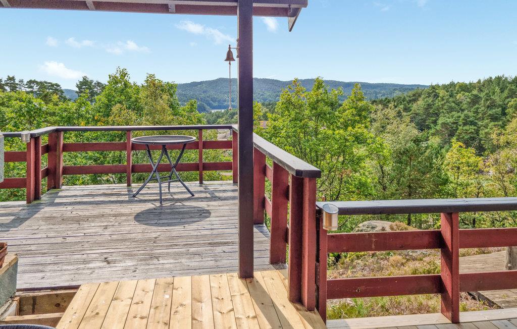Tilbring jeres velfortjente ferie i det sydlige Norge og slap af i dette familievenlige feriehus med pejs. Huset giver jer mulighed for at slappe af, fordi I føler jer hjemme her og kan nyde faciliteterne. Huset suppleres af en rummelig og stor træterrasse, der lægger op til solbadning. Tager I jeres hund med, kan dyret finde sit private hjem i hundegården. Leg sammen i haven og nyd udsigten over vandet og landskabet.