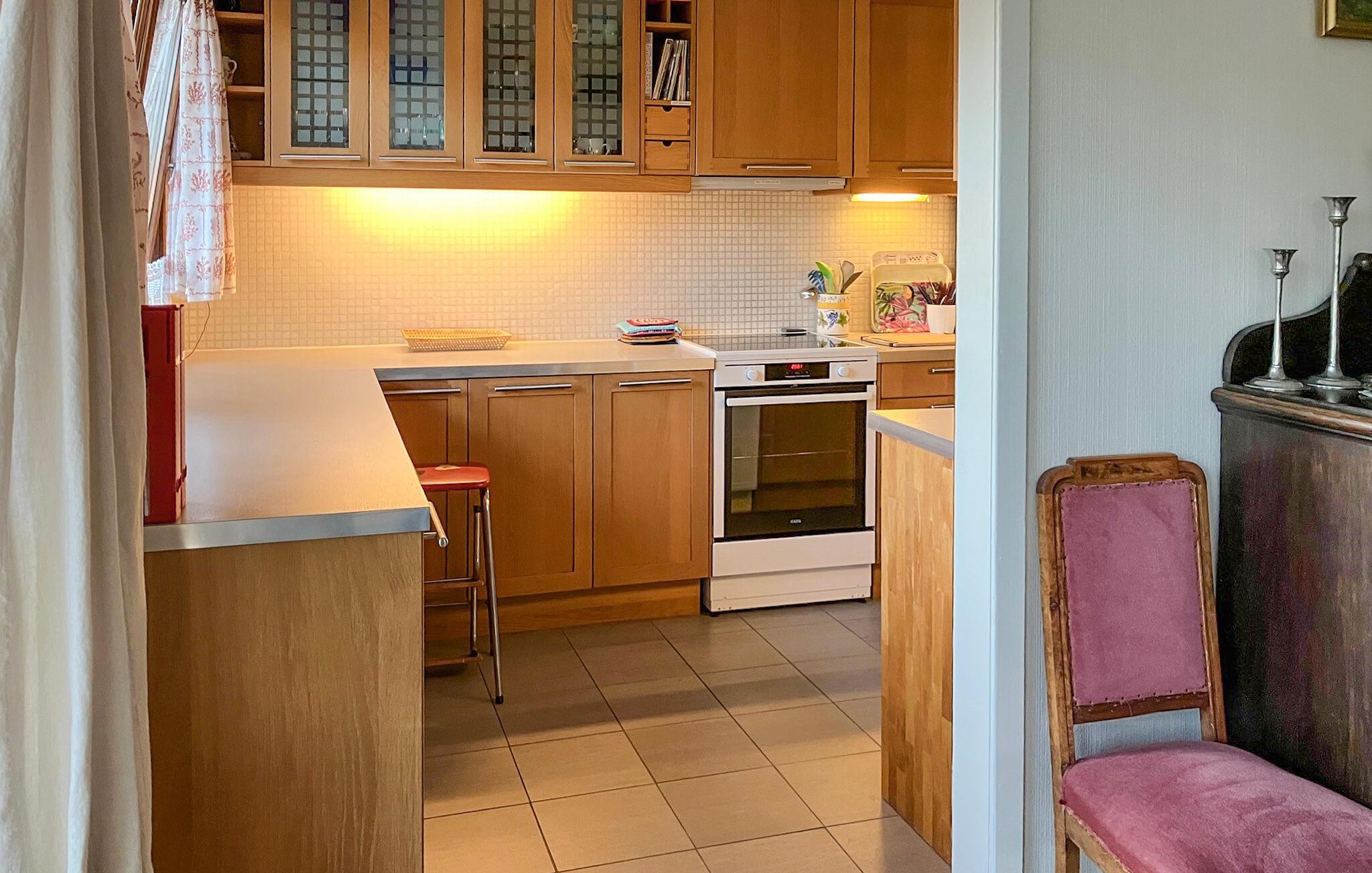 Sæt jer til rette i den rummelige opholdsstue. Læn jer tilbage i de komfortable sofaer og nyd den uhindrede udsigt gennem de store vinduer. Her er det at sætte farten ned og slappe af dagens orden. Lav musik sammen efter aftensmaden, som I kan tilberede i det praktiske køkken. Den hyggelige atmosfære i opholdsstuen bidrager til en afslappet feriestemning.