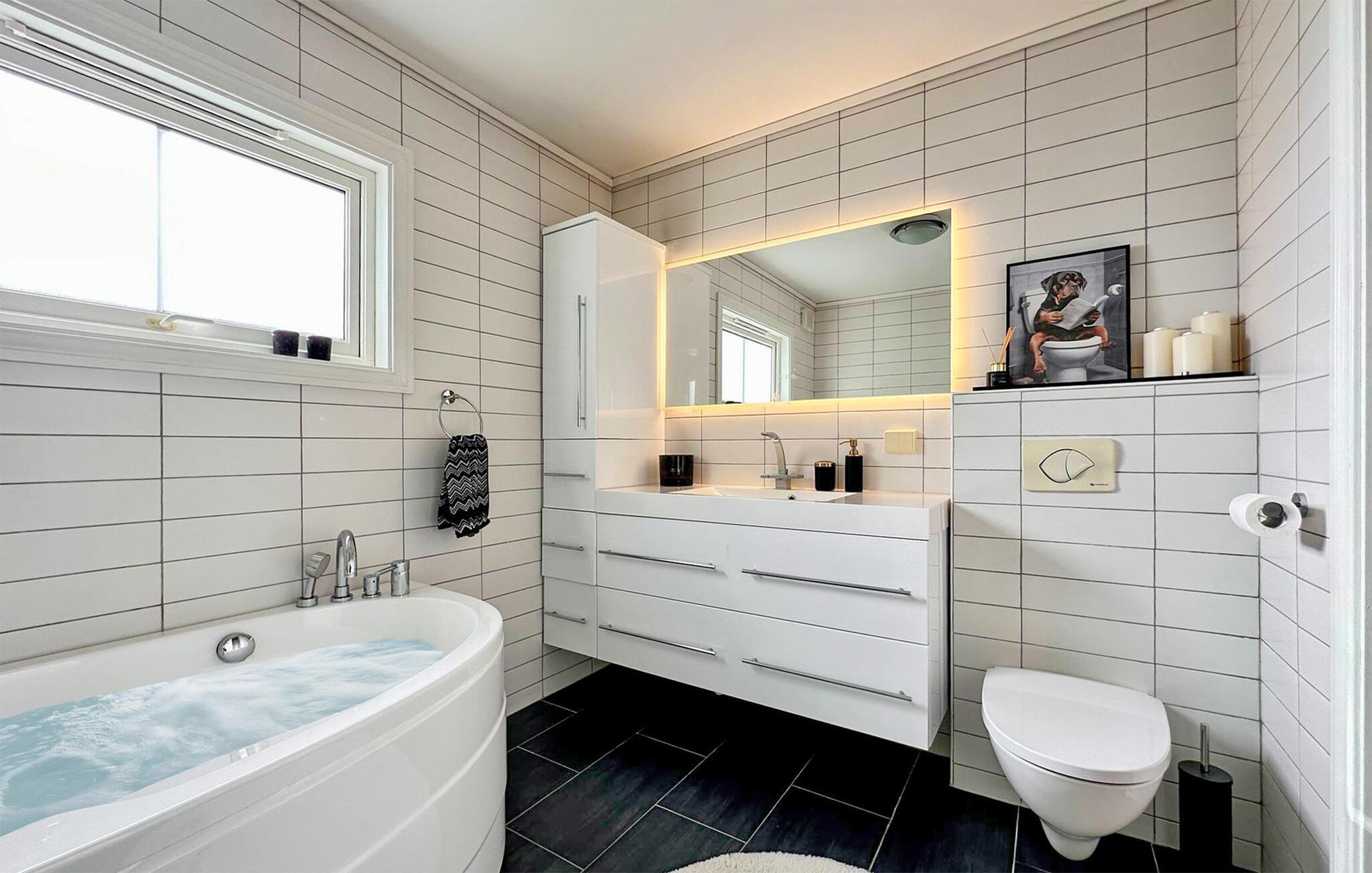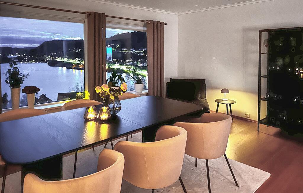 Glæd jer til en afslappende ferie i dette stilfulde feriehus, der lægger op til hyggestunder med sine generøse faciliteter og storslåede udsigt. Huset giver jer en ideel base til afslapning og udflugter langs Norges sydkyst. Find jer godt til rette i den store sofa i den lyse stue eller nyd hyggelige måltider i den smagfulde spisestue. den moderne indretning med store vinduer og elegante detaljer skaber en varm, men elegant atmosfære. Om aftenen kan I kigge ud over vandet, mens blødt lys fylder rummet.