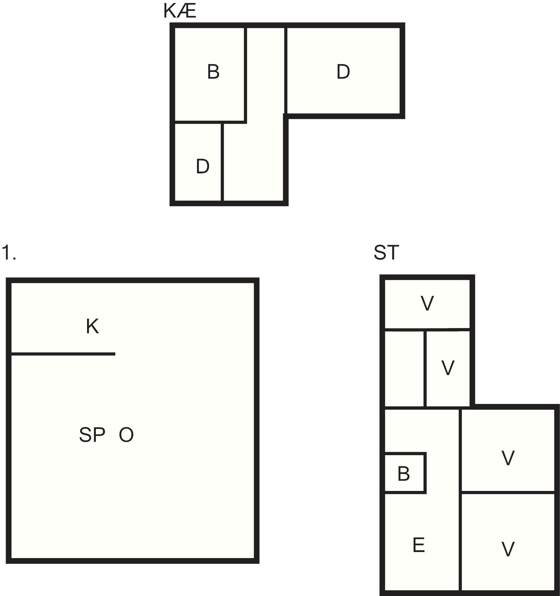 4 Soveværelser: (1DS+1S)+(1DS)+(3S)+(1S), barneseng