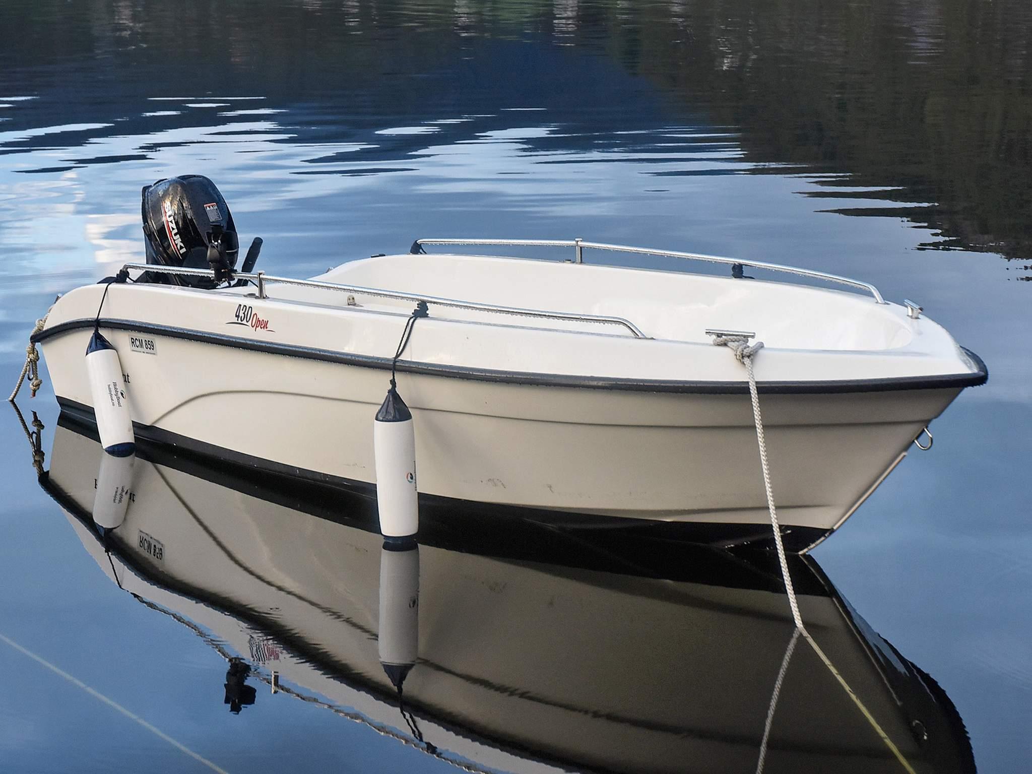 - 1 x 15 fots Hobby430 med 20 HK Suzuki442ca, GPS/kartplotter/ekkolodd