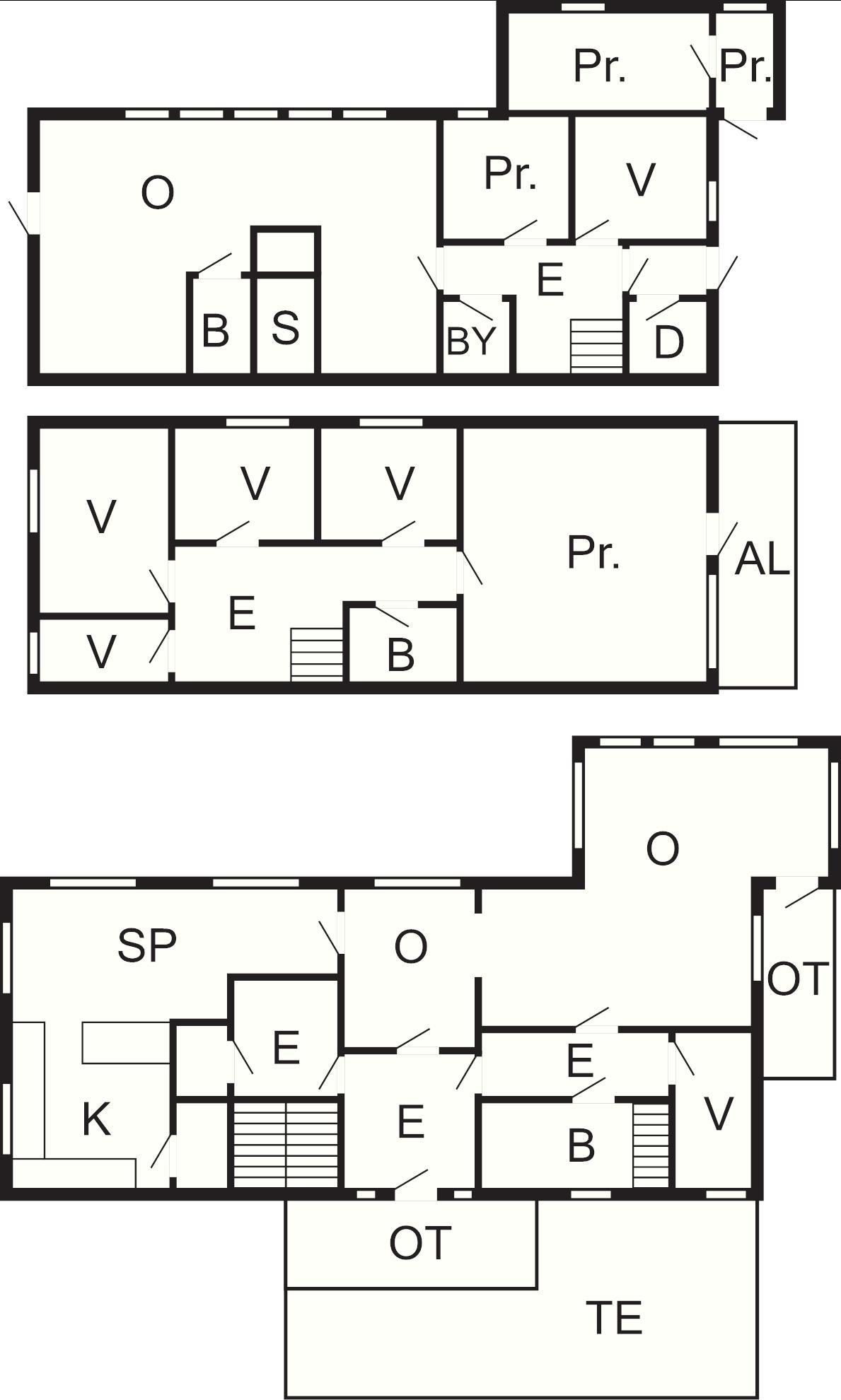 6 Soveværelser: (1DS)+(1DS)+(2S)+(1S)+(1DS)+(2S), barneseng