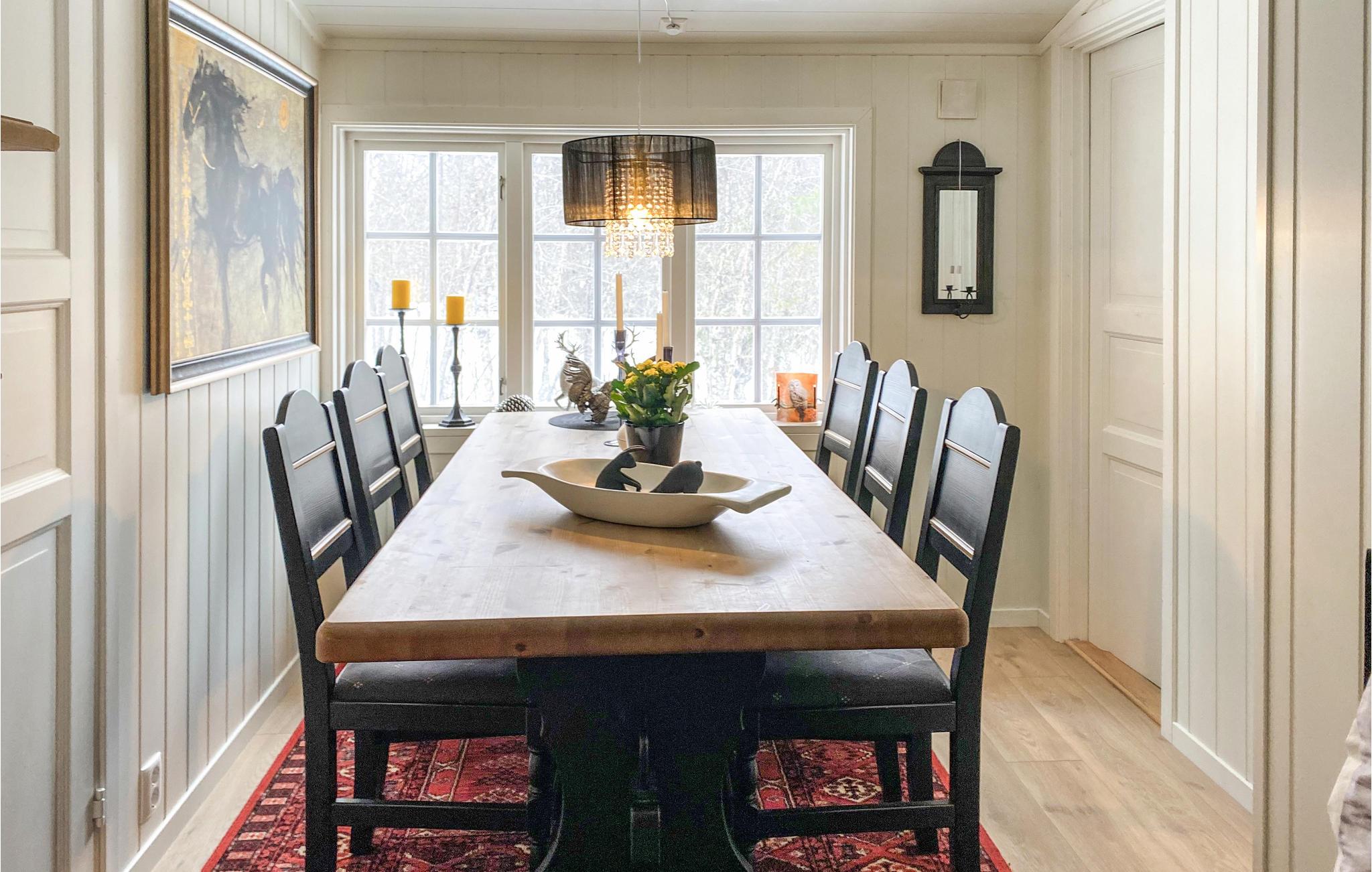 Her bor I på en kæmpe naturgrund i pagt med naturen. Huset passer perfekt til naturmennesker. Husets indretning er indbegrebet af norsk hygge. Stemningen er varm og de utallige små detaljer bidrager til følelsen af ??velvære. Snak i sofaen med levende lys og lyt til de knitrende flammer i brændeovnen. Afslut dagen på den skønne terrasse. Rundt om hjørnet kan I begynde jeres vidunderlige vandretur på den smukke vandresti.