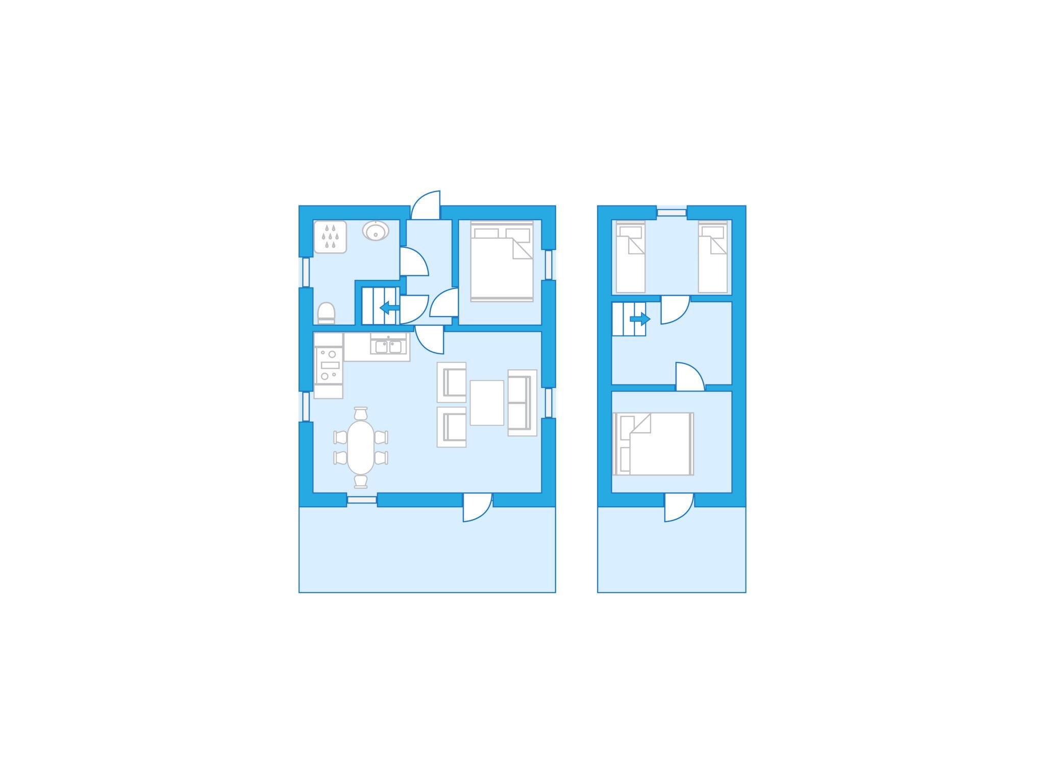 "Saglia", 4-room house 70 m2 on 2 levels. Cosy furnishings: living/dining room with Scandinavian wood stove, dining table, satellite TV and DVD. Exit to the terrace. 1 room with 1 double bed (150 cm, length 200 cm). Open kitchen (oven, dishwasher, 4 ceramic glass hob hotplates, toaster, kettle, microwave, freezer, electric coffee machine). Shower/WC. Upper floor: (ladder), 1 room with sloping ceilings with 1 double bed (150 cm, length 200 cm). Exit to the balcony. 1 room with sloping ceilings with 2 beds (75 cm). Electric heating, underfloor heating. Wooden floors. Balcony, terrace roofed. Terrace furniture, barbecue (portable). Facilities: washing machine. Internet (WiFi, free). Please note: non-smoking house. Smoke alarm, fire extinguisher. Freezer approx. 50 l. 924531169