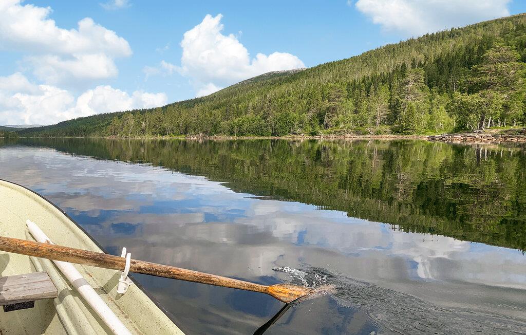 Nyd en vidunderlig udsigt over søen i dette feriehus. Kun få skridt fra søen byder dette smukke hus sine gæster velkommen omgivet af natur. Føl jer godt tilpas med familien i de komfortabelt indrettede værelser. Efter jeres aktiviteter, samles hele familien til en lækker middag og nyd tiden sammen om aftenen, skaber pejsen en hyggelig atmosfære. Terrassen lægger op til at tilbringe dejlige timer udendørs, nyde solen og de lange sommeraftener og arrangere sjove grilleftermiddage. Glæd jer til mange timers fiskeri og svømning og nyd freden og roen i denne oase. Namdalen har meget at byde på i en varieret natur, der strækker sig fra kysten til bjergene. Udforsk det maleriske landskab på en vandretur og lær mere om regionens historie på Namdal Museum. Nyd at være tæt på naturen i dette attraktive feriehus.