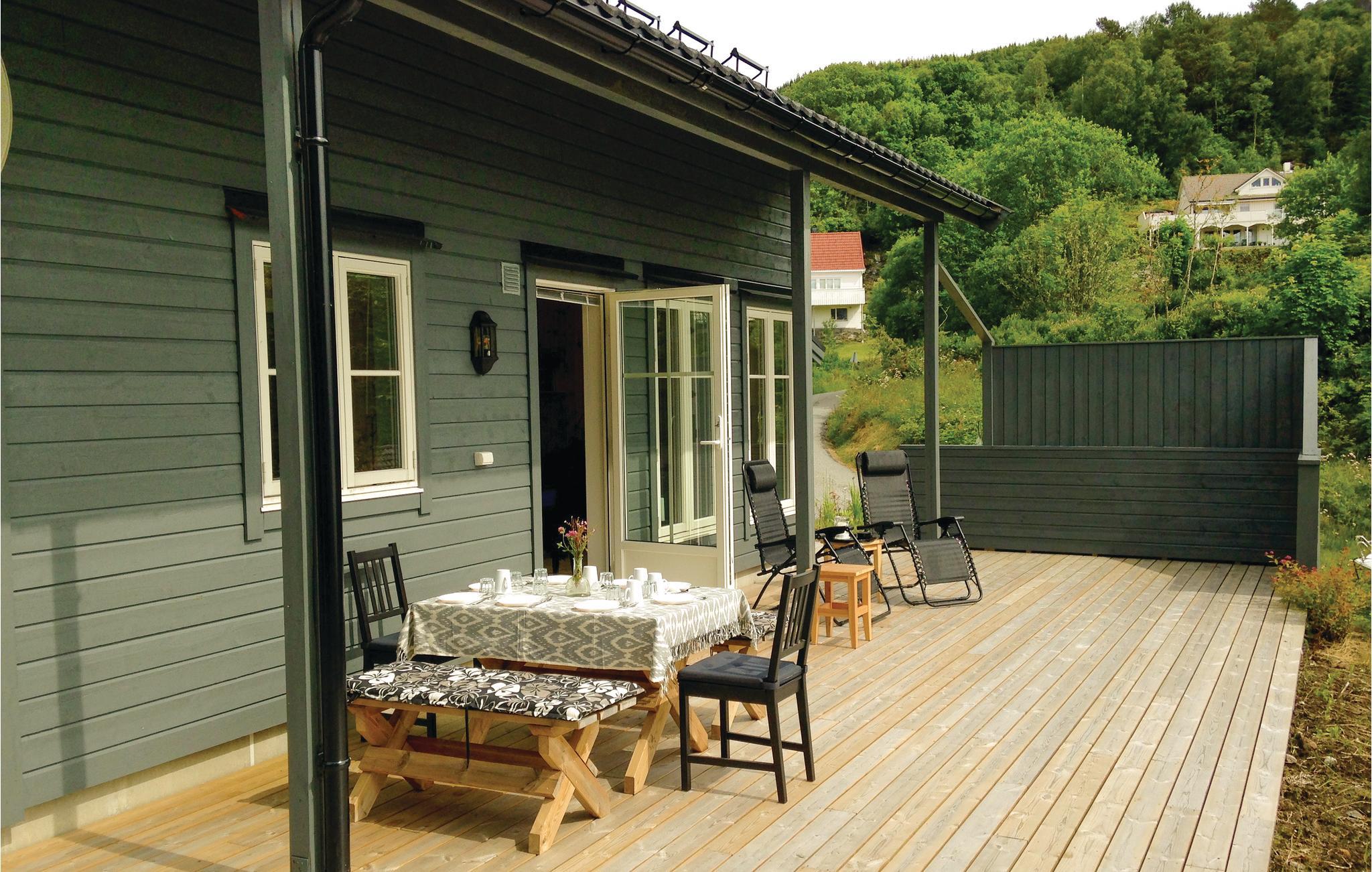Feriehuset tilbyder blandt andet en stor og anvendelig terrasse, hvor du kan sidde og nyde udsigten over Radøy og Alverstraumen. På grunden, hvor feriehuset ligger, har husejeren plantet kartofler, og i sæsonen er der mulighed for at smage dem.