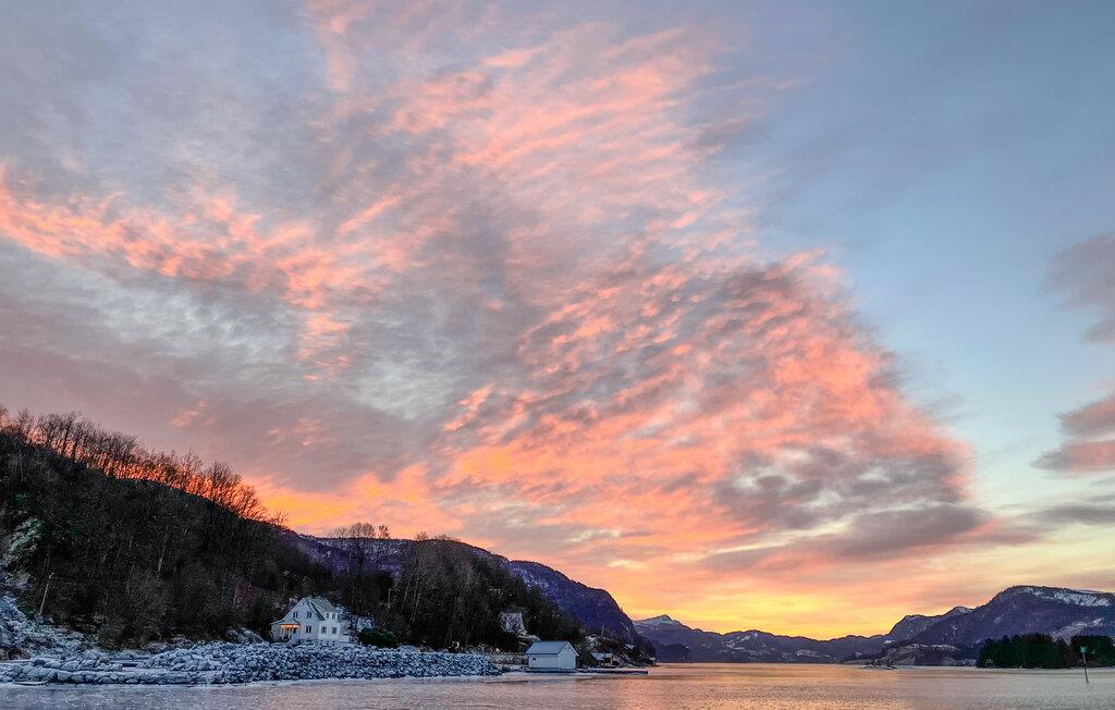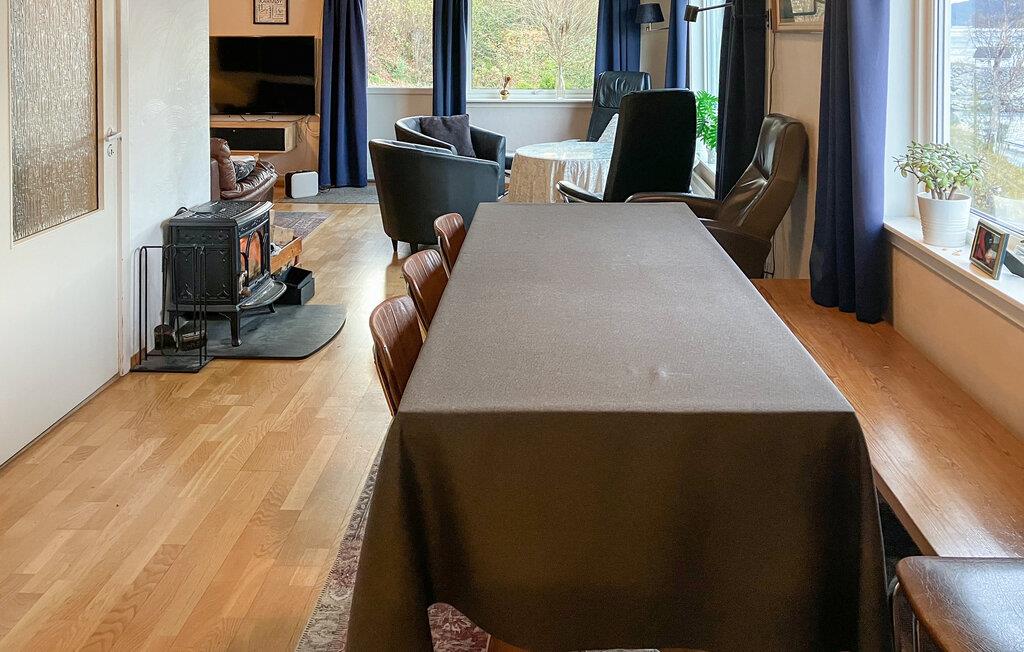 Med sin vidunderlige udsigt over Vatsfjorden får I i denne bolig den perfekte kombination af natur, hygge og komfort. Omgivelserne er allelunde smukke her midt i det norske fjordlandskab, hvor I kan stå op hver dag til lyden af stilhed med en friskbrygget morgenkaffe og bare nyde. Huset byder på mange kvadratmeter og en gennemtænkt indretning, der gør det velegnet til to familier, og indretningen er både varm og indbydende. Find jer godt til rette om aftenen med bræt- eller kortspil, mens I nyder udsigten over fjorden. Tag jer god tid til madlavningen i køkkenet, og måske I skal tilberede en selvfanget fisk? Bådehavnen ligger lige uden for døren, og her kan I tage båd ud for at fiske eller bade i fjorden.