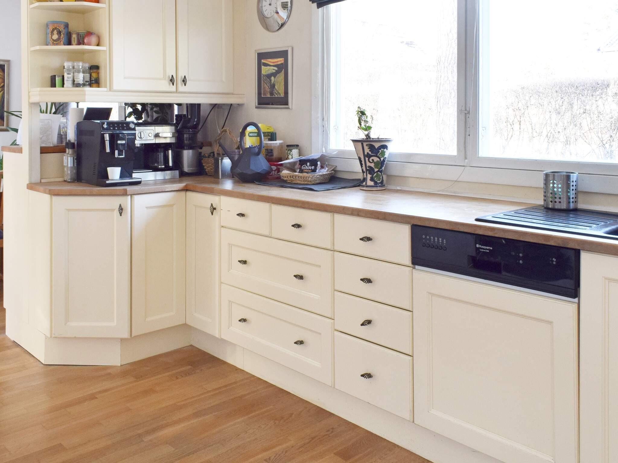 Køkken: høj stol, el-komfur, køleskab, fryser 100 - 139 l, mikroovn, emhætte, opvaskemask., vaskemaskine, kaffetragt