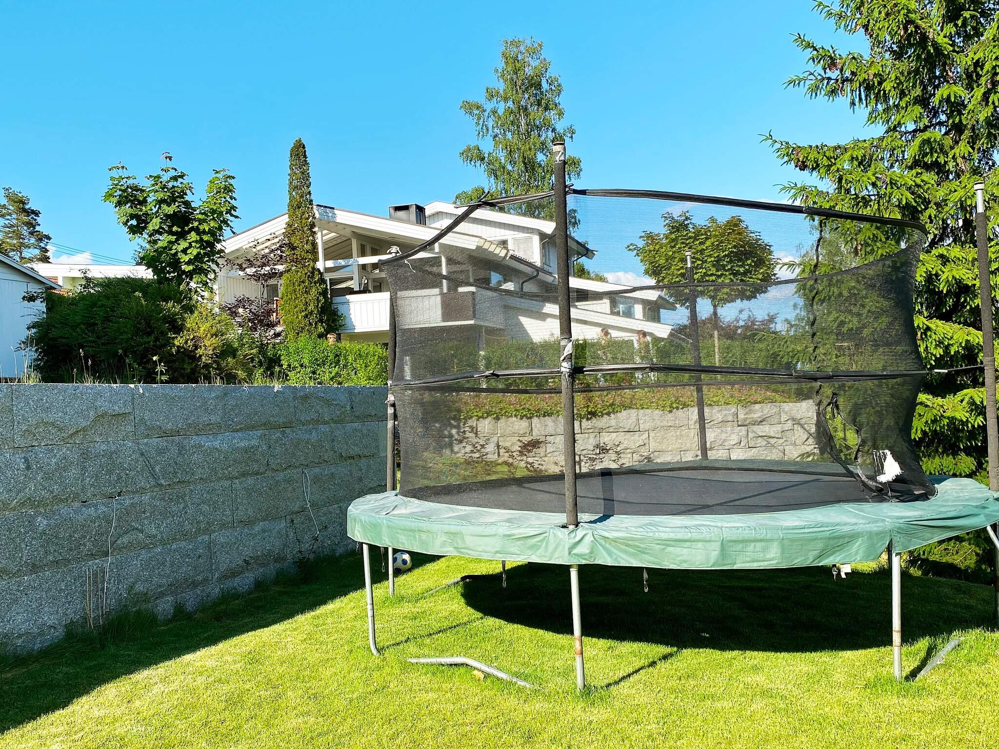 Huset er over to etasjer. Inngangen er i andre etasje hvor det er en stor stue med to spiseplasser og nydelig utsikt. Stor og flott terrasse foran stuen. Tre store soverom, et med dobbeltseng og et med en køyseng og et soverom med dobbel sovesofa. Flott bad med toalett, boblebad og dusj. I første etasje er det en peisestue, et lite soverom med en køyeseng og en enkeltseng samt bad med dusj og pumpedo; den fungerer som et normalt toalett, men bråker litt når man trekker ned. Det er badstu direkte fra badet i denne etasjen og vaskemaskin tilgjengelig i bod. Utenfor er det en stor terrasse og en hyggelig grillkrok under tak på bakkeplan. Stor hage med trampoline.