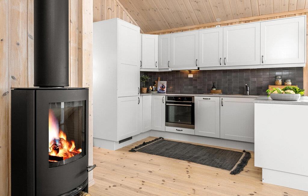Denne smukt beliggende hytte er en skøn oase til en pause fra hverdagen. Varmt træ, en behagelig sofa og en brændeovn skaber en atmosfære, hvor I hurtigt kan slappe af. Læn jer tilbage med en kop kaffe, lyt til god musik eller lav lækre måltider sammen i det moderne køkken.