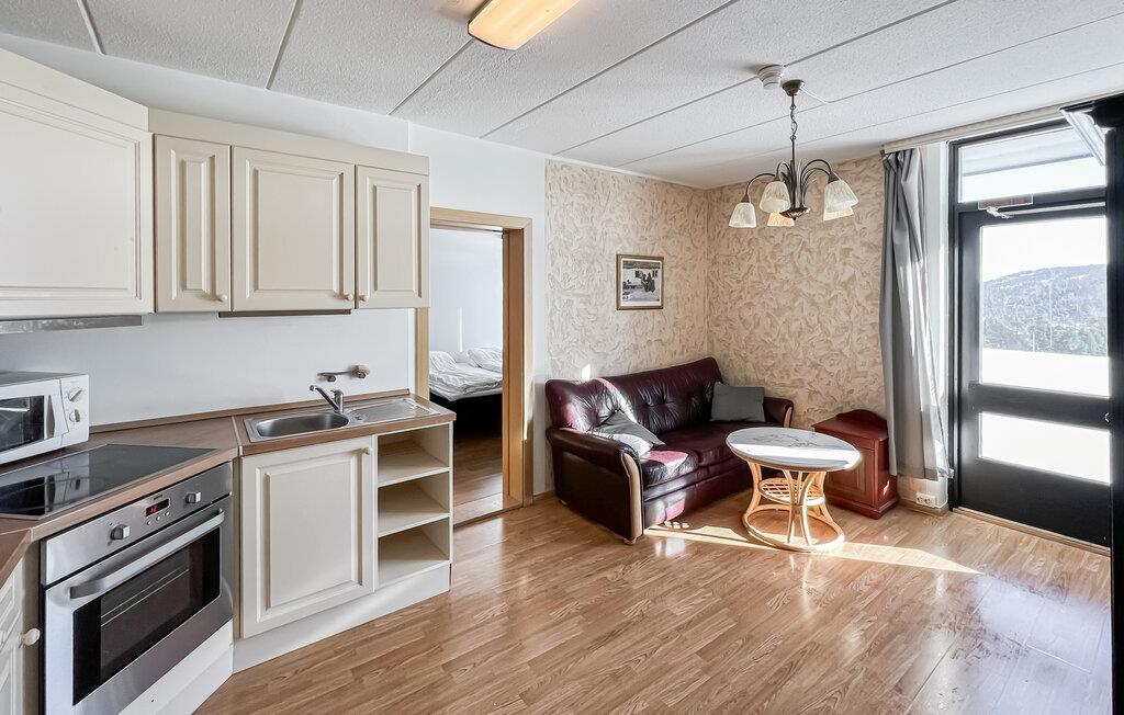 Denne indbydende lejlighed er det perfekte udgangspunkt for at nyde den betagende natur i Norden. Tilbered jeres livretter og proviant til udflugterne i det lyse, fuldt udstyrede køkken. Efter en oplevelsesrig dag kan I slappe af med en god bog på sofaen eller benytte den fælles sauna.