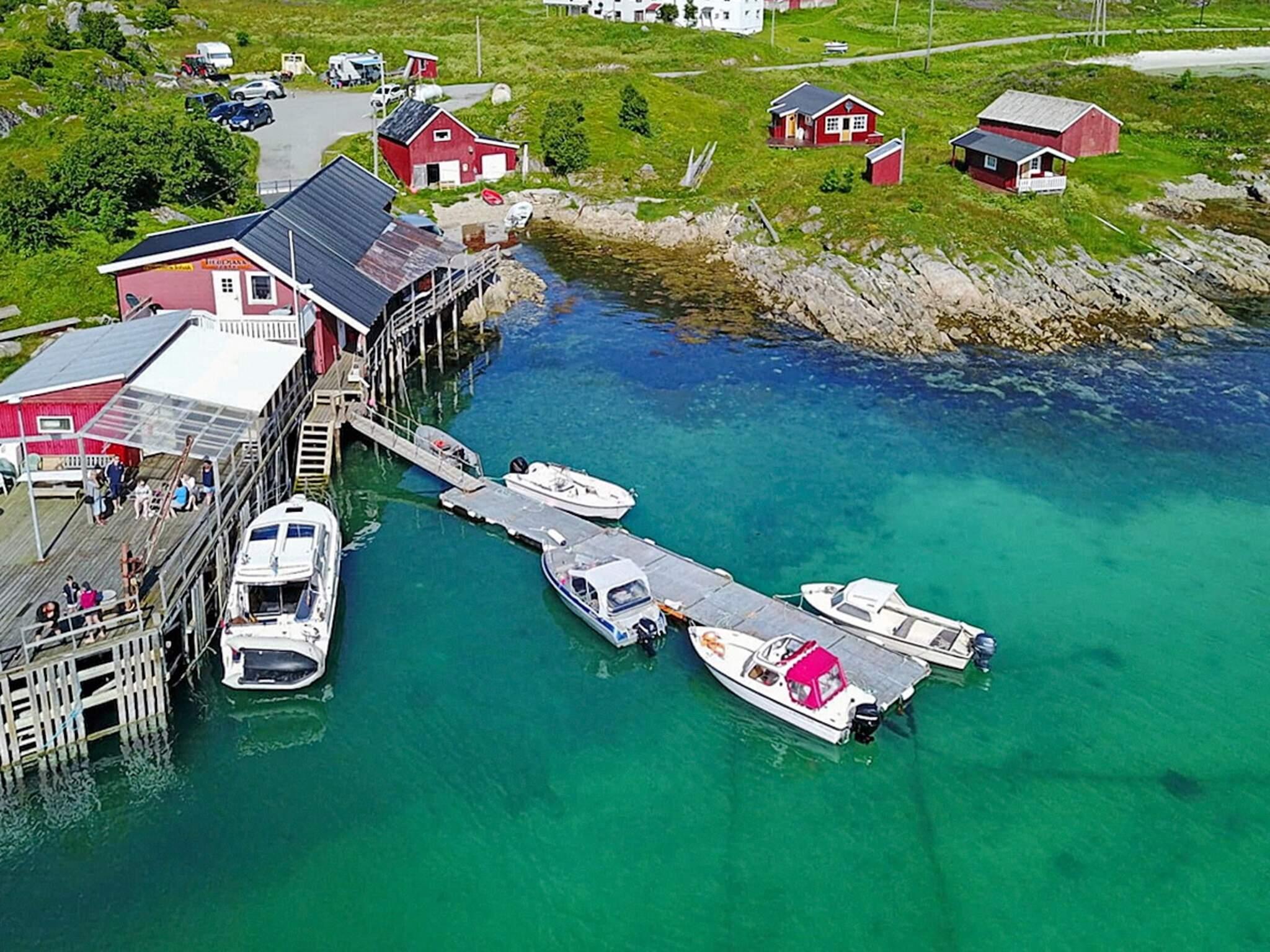 Flytebrygge med enkel adgang til båten. Sløyebenk med tak, lys og rennende vann. Oppbevaringsplass for fiskeutstyr og fryseboks til fangsten. Benker og bord til forberedelser og fiskerprat. Verdensklasse fiske og nordlys! Dette er et av Europas mest fiskerike havområder, med stor bestand av kveite, sei, torsk og uer.