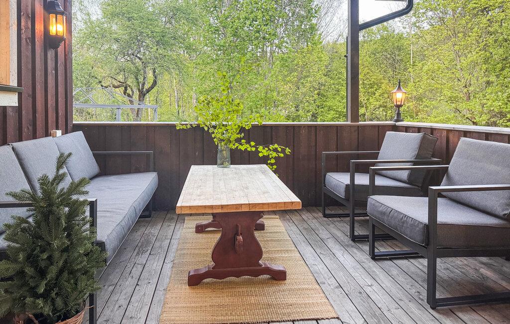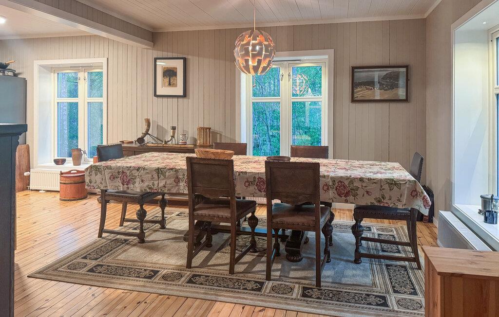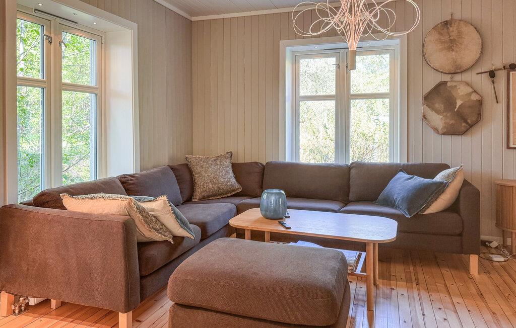 Nyd en afslappende ferie i dette rustikke feriehus omgivet af natur. Flygt fra hverdagen og find ro i jeres smagfuldt indrettede hus, der kombinerer moderne komfort med landlig charme. Området indbyder til udendørsaktiviteter og lover afslapning i enhver sæson. Den kærligt designede opholdsstue byder jer velkommen med en behagelig hjørnesofa, trægulv og stilfuld indretning. Nyd en filmaften foran fjernsynet, eller tilbring hyggelige stunder i den tilstødende spisestue med et stort bord og varm belysning. I kan slappe helt af i husets spabad. Tag plads på den rummelige, overdækkede træterrasse. Tilbring lune aftener her med et glas vin, eller start dagen med morgenmad i morgensolen. Udendørsområdet er møbleret med forskellige siddepladser og smelter harmonisk sammen med det omkringliggende skovlandskab. Vandrestier starter lige uden for døren og fører jer dybt ind i de grønne omgivelser. Gå en tur til den nærliggende flod, der tilhører feriehuset og inviterer til at fiske og svømme – der kræves ikke fisketegn. Brug den private grillplads til afslappende timer udendørs. Tag en tur til Norsjø Feriepark, hjemsted for Norges eneste wakeboardanlæg i fuld størrelse, eller besøg Patos Skulpturpark. Det populære Bø Sommarland og Lifjell skisportssted er også inden for rækkevidde.