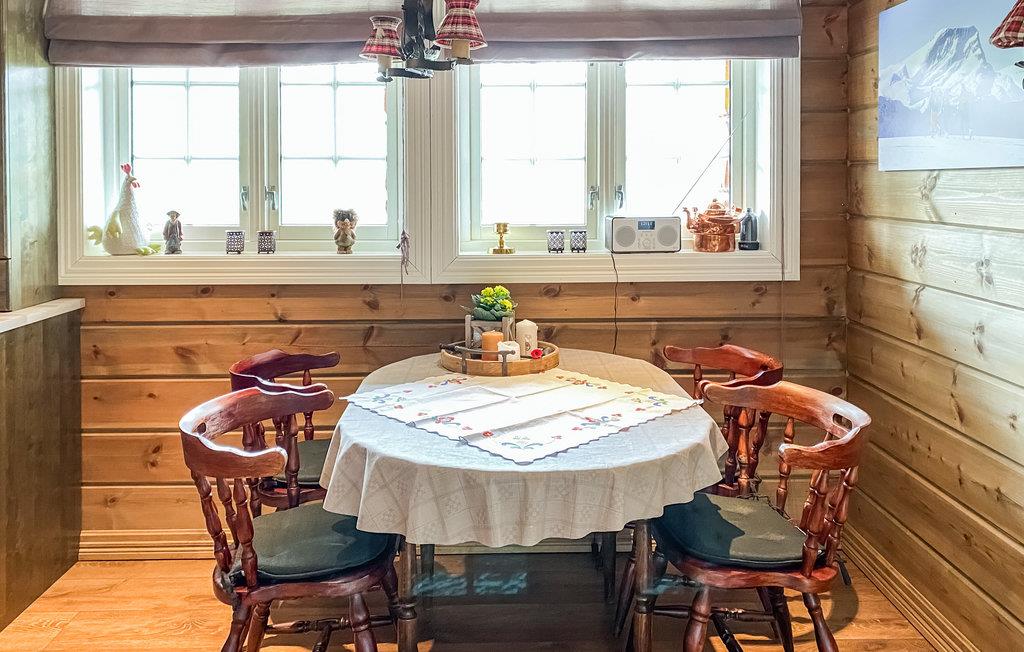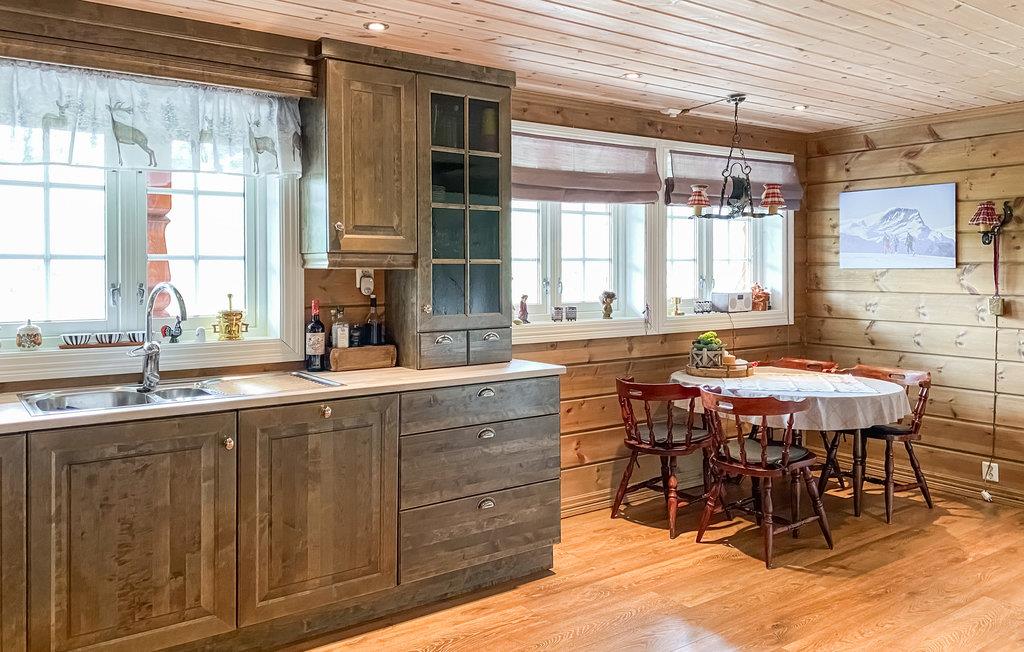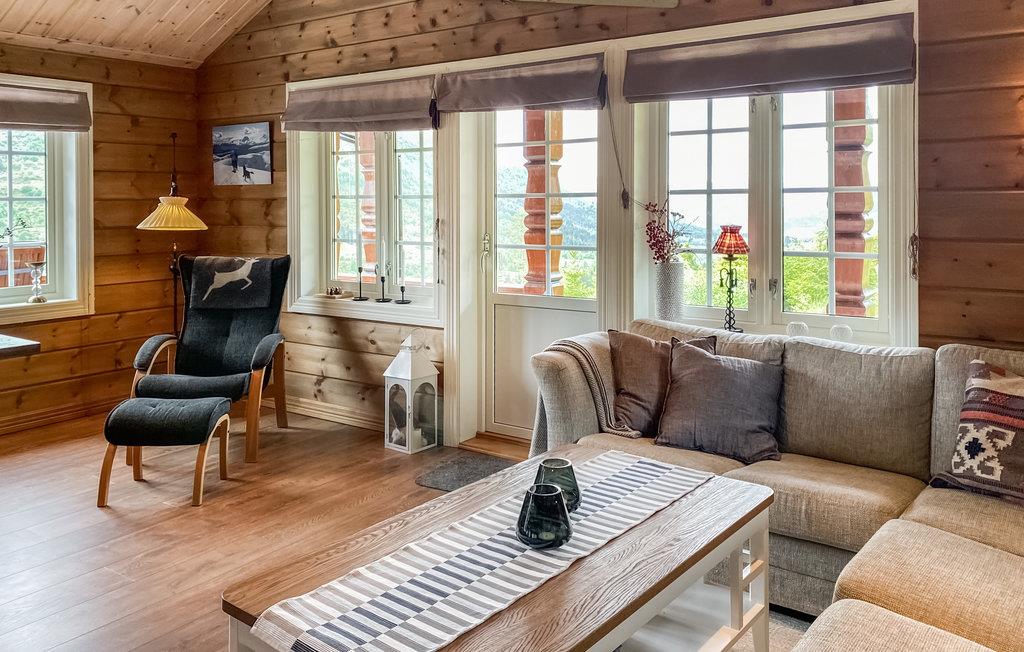 Omgivet af den maleriske natur i Hjelmelandsdalen venter dette charmerende træhus med en spektakulær panoramaudsigt over bjergene og den frodige dal. De store vinduer lader masser af lys strømme ind og skaber en varm og indbydende atmosfære. Det åbne og rummelige køkken samt den smagfulde indretning danner de perfekte rammer for fælles madlavning, hyggelige måltider og kvalitetstid sammen. Efter dagens oplevelser kan I slappe af foran brændeovnen eller nyde aftenen på en af terrasserne, mens naturen omkring jer falder til ro.