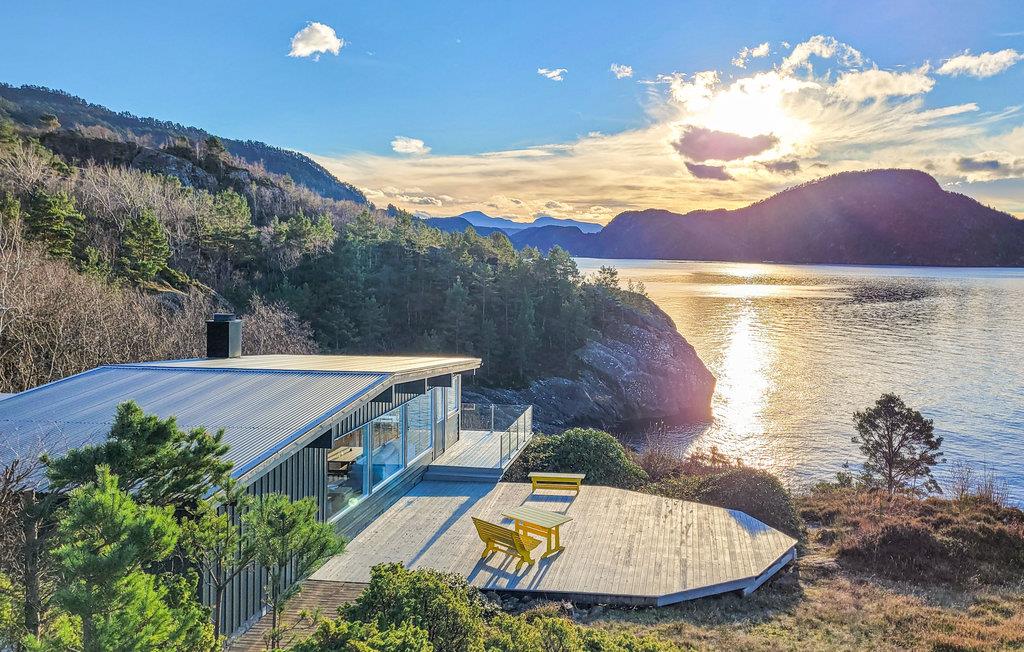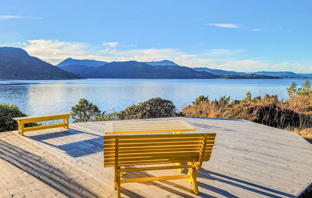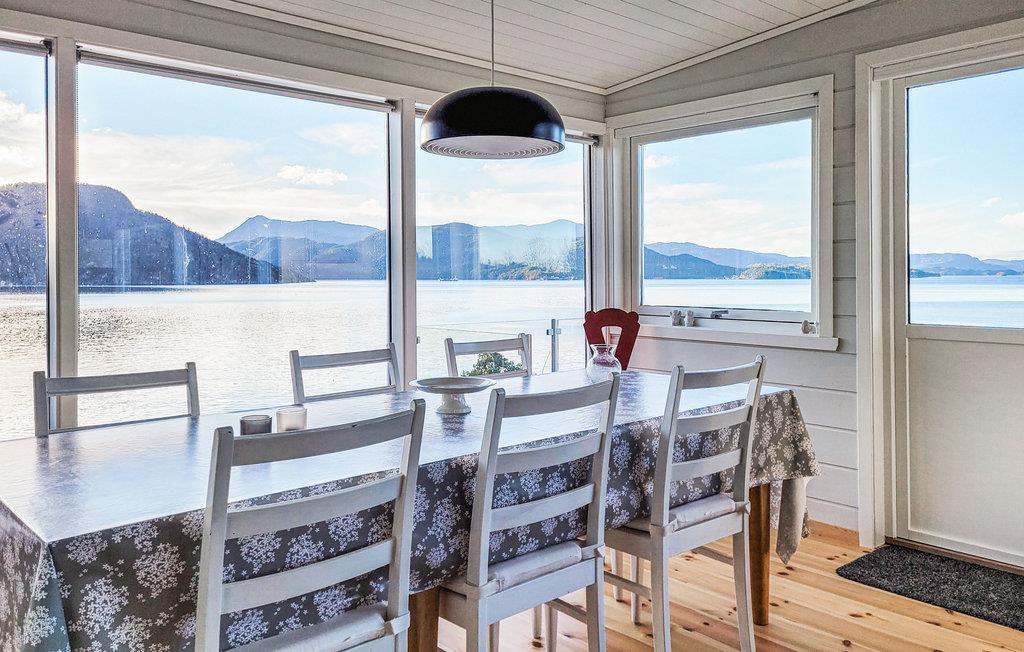 Der venter jer en udsigt, som er helt ud over det sædvanlige fra dette feriehus. Her får I en skøn base til jeres dage i Norge. I kommer sikkert til at bruge en god del af tiden rundt om spisebordet, hvor I kan kigge ud på vandet og bjergene, for her er panoramaet næsten underholdning nok i sig selv. Efter en lang, aktiv dag, hvor I har fisket eller badet nede ved fjorden, er der ikke noget bedre end at læne sig tilbage i den behagelige sofa og lægge planer for det næste, I vil opleve, mens ilden knitrer i pejsen.