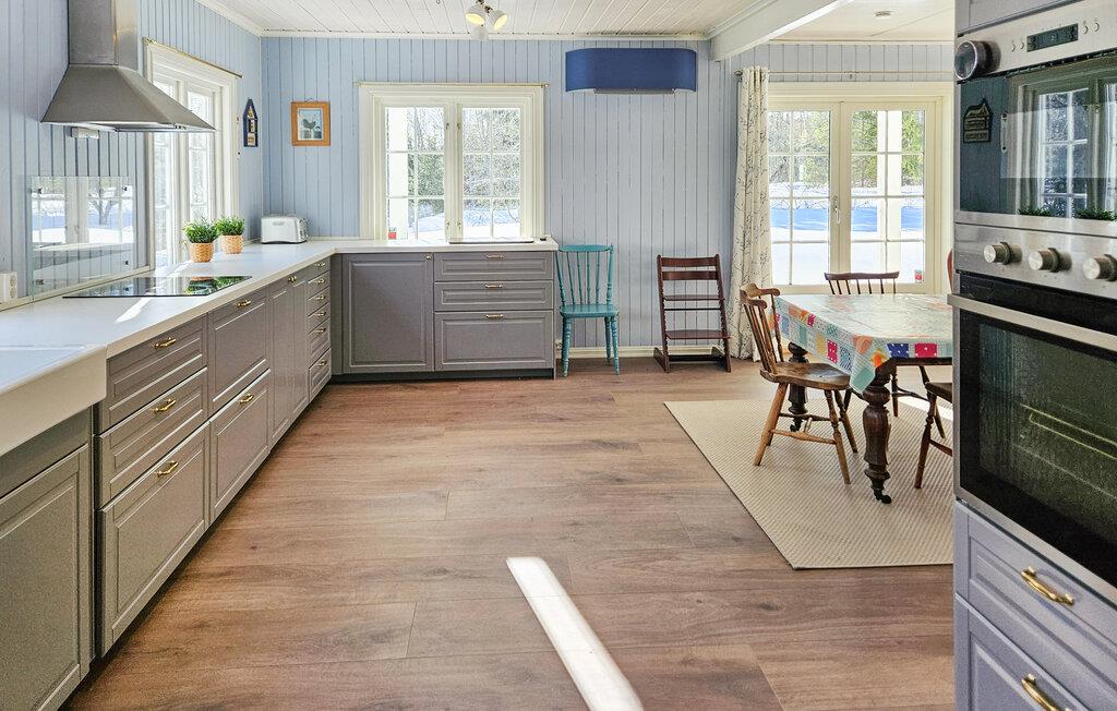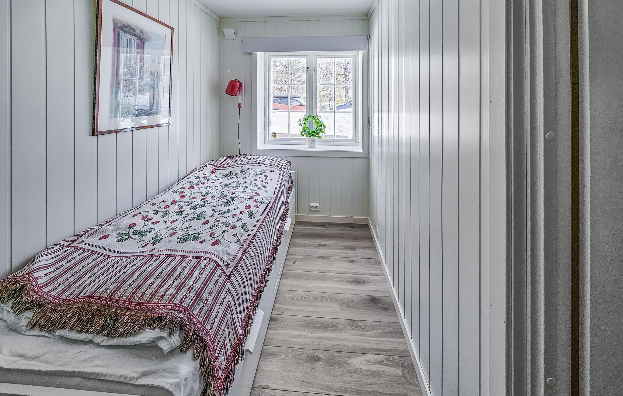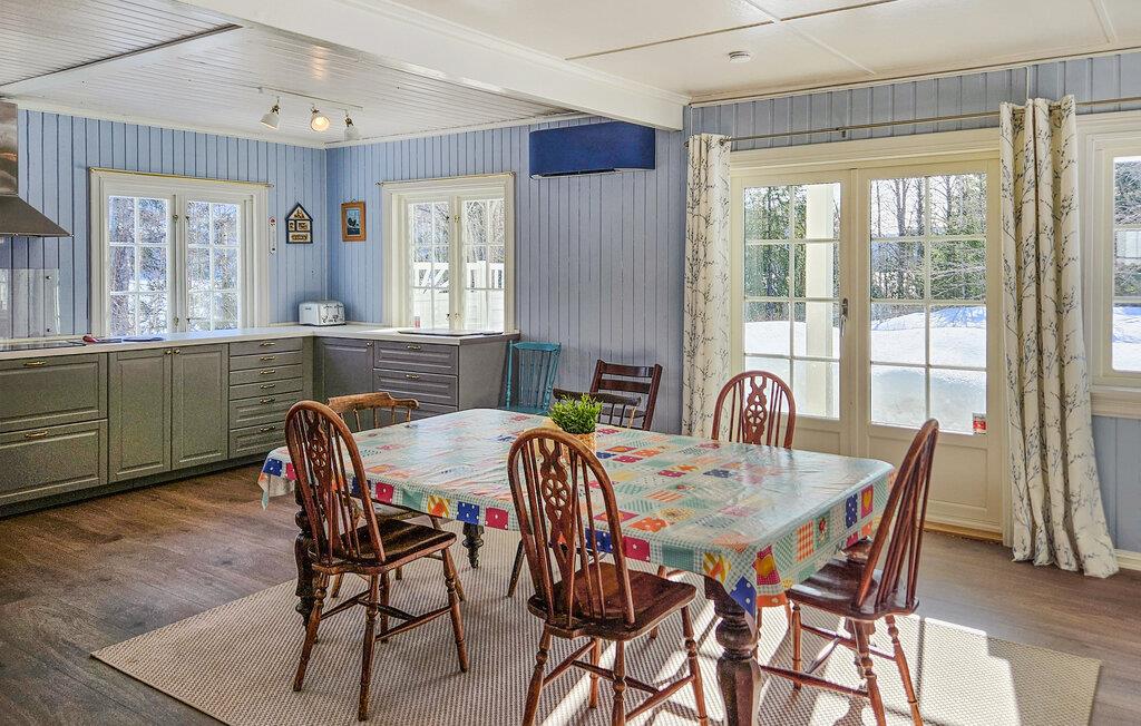 Huset ligger lige ved Krøderen-søen og har en helt fantastisk beliggenhed til en ferie med fred, ro og store oplevelser i naturen. Med sine mange kvadratmeter og soveværelser kan I rejse som en større flok uden at give køb på komforten og glæde jer til nogle skønne uger med god tid til tingene. Indretningen fremtræder lyst og indbydende i varme farveskalaer, der skaber en atmosfære, man virkelig kan slappe af i. Gør madlavningen til et fælles projekt i det store køkken og nyd måltiderne ved spisebordet med udsigt til omgivelserne. Senere kan I runde aftenen af i sofaen med hver jeres bog eller en god film, mens I lægger planer for de kommende dage.