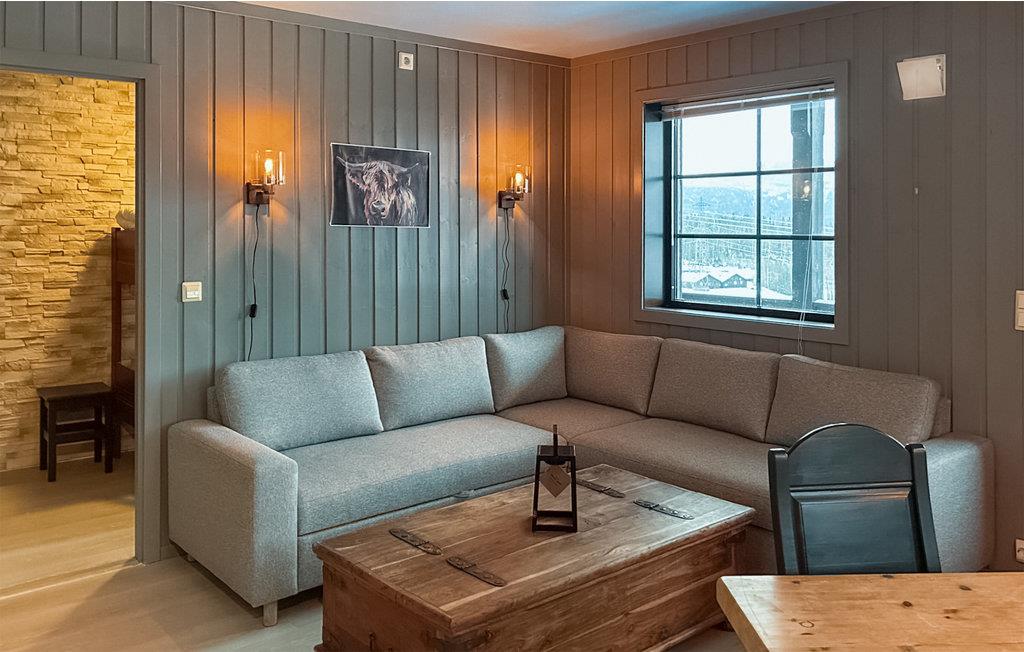 Glæd jer til en ferie i et smukt bjerglandskab i denne hyggelige ferielejlighed på NoreFri med ski in - ski out.