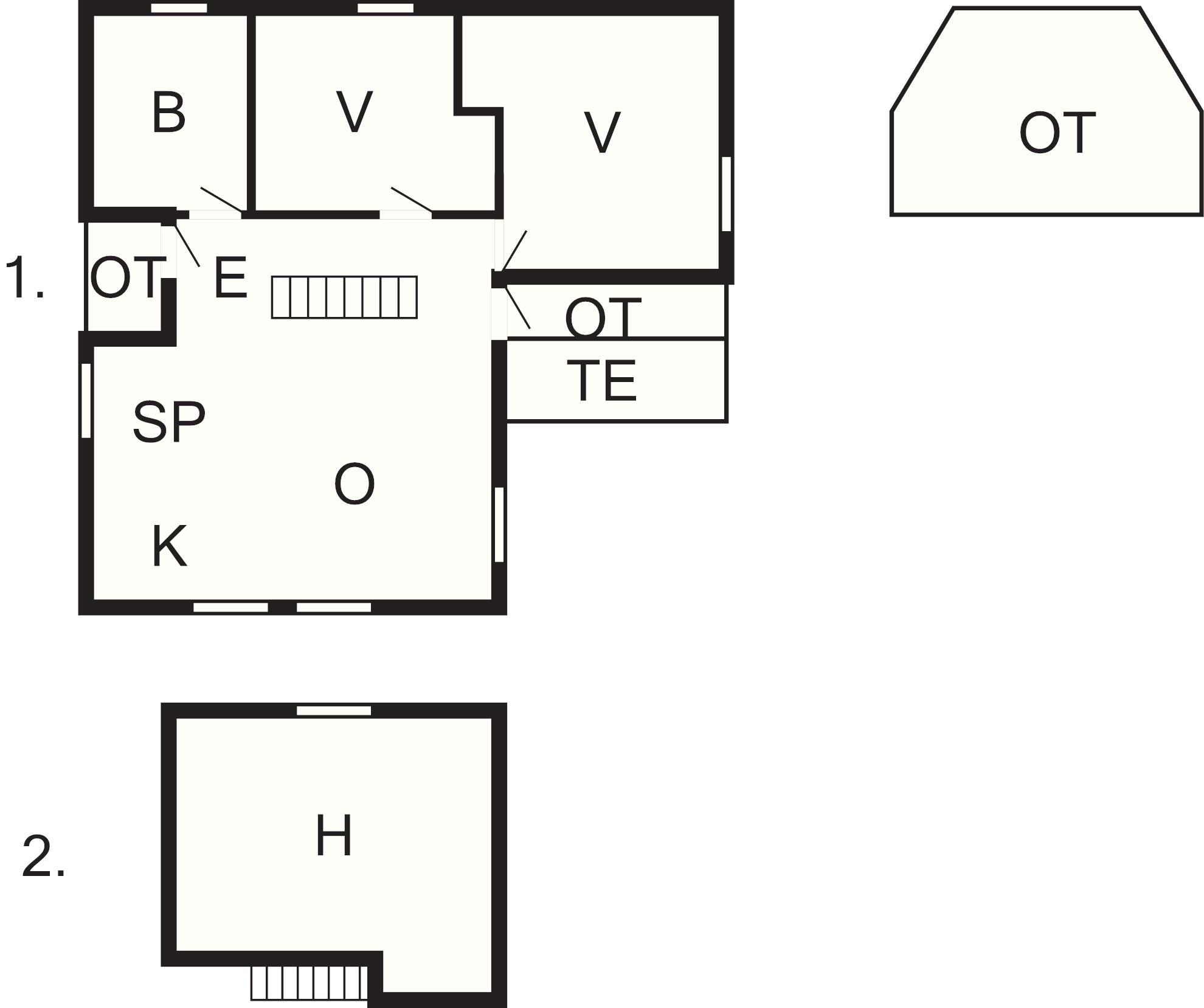 Romslig feriehus med utsikt til vannet. Åpen stue med dør ut til en overbygd terrasse og uteområde med grillhytte og hagebenk. Stor hems med en seng som rokkeringsplass.