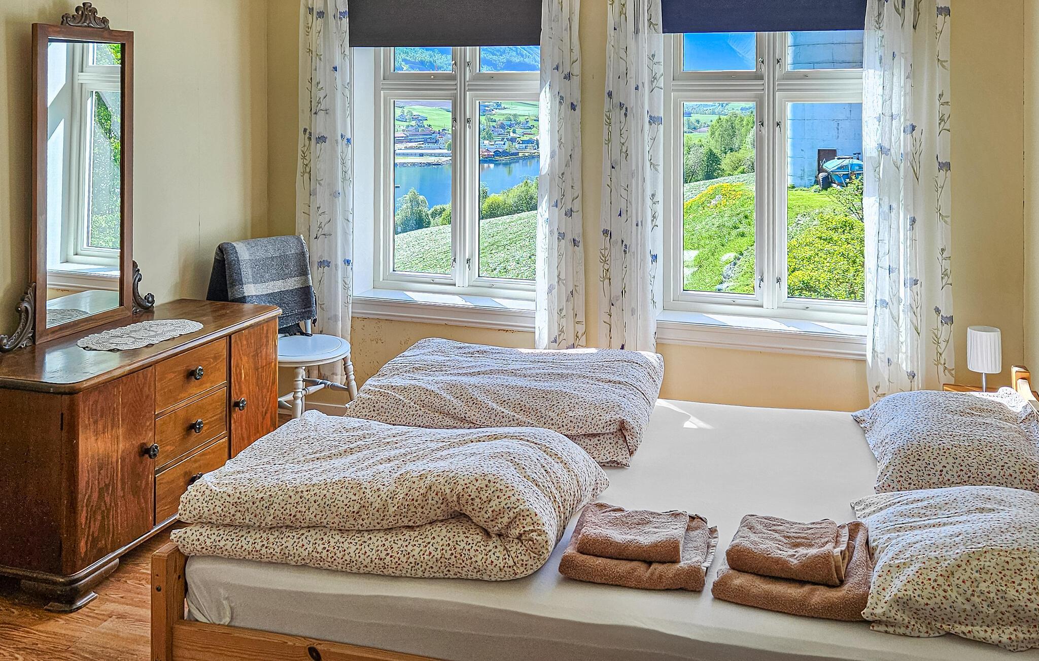 Ældre, istandsat feriehus beliggende i rolige omgivelser på en gård. Stor terrasse med flot udsigt over et naturskønt landskab. Der er en dejlig plads til at fiske fra og grille på ved flydebroen ’naustet’. Gode gangstier gennem skov og fjeld samt fiskemuligheder i havet og i søer. Huset er et rigtig godt udgangspunkt for ture i bil til bl.a. Briksdalsbreen, Geiranger, Vestkapp og Strynefjellet. Tag banen Loen Skylift op til 1.011 moh. og træd direkte ind i en restaurant med store panoramavinduer og fantastisk udsigt over sø, fjord og fjeld. Der er lange velanlagte stier og klatreområder på Via Ferata.
