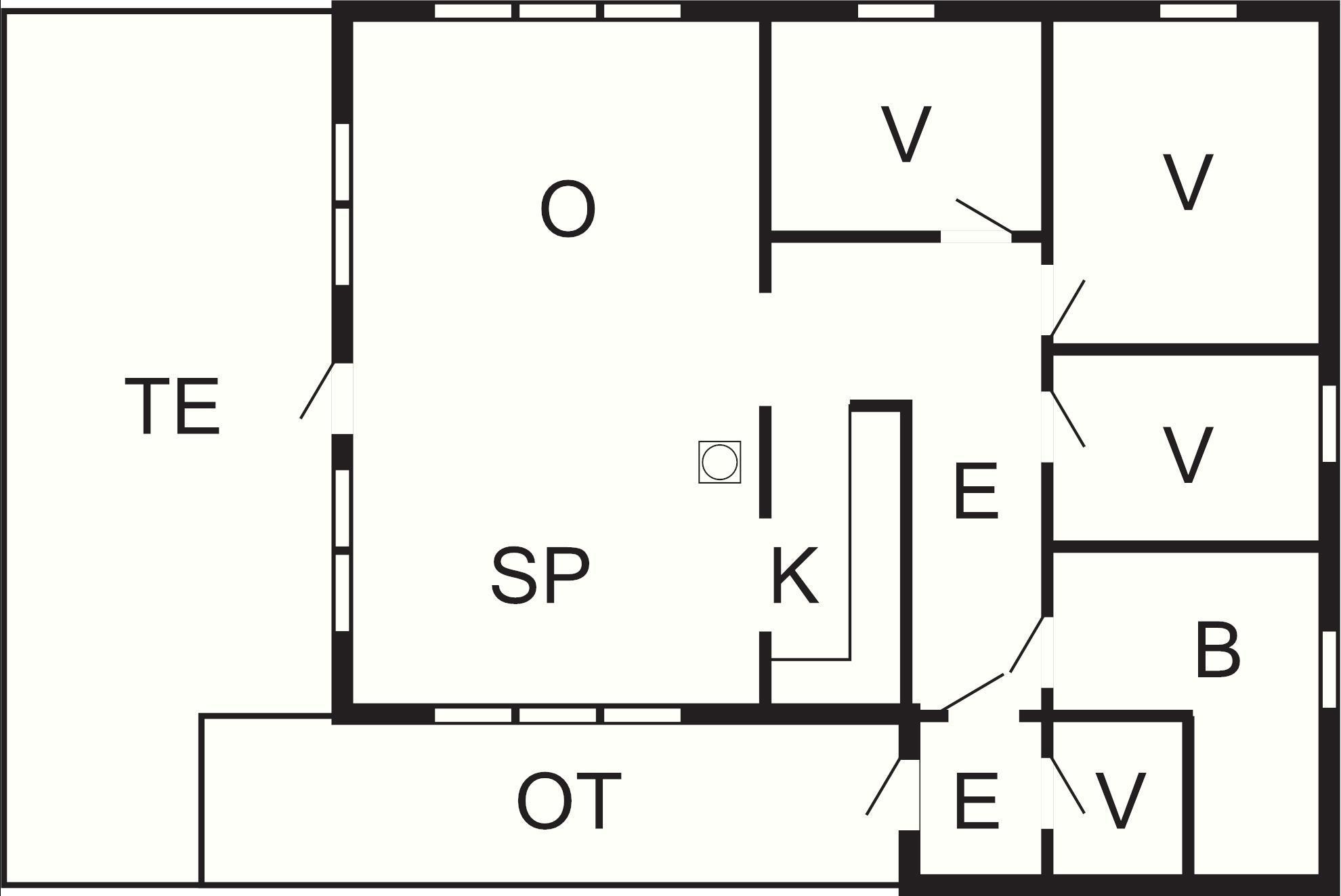 1 Opholdsstue: 34 m2, brændeovn, radio, tv, parabol