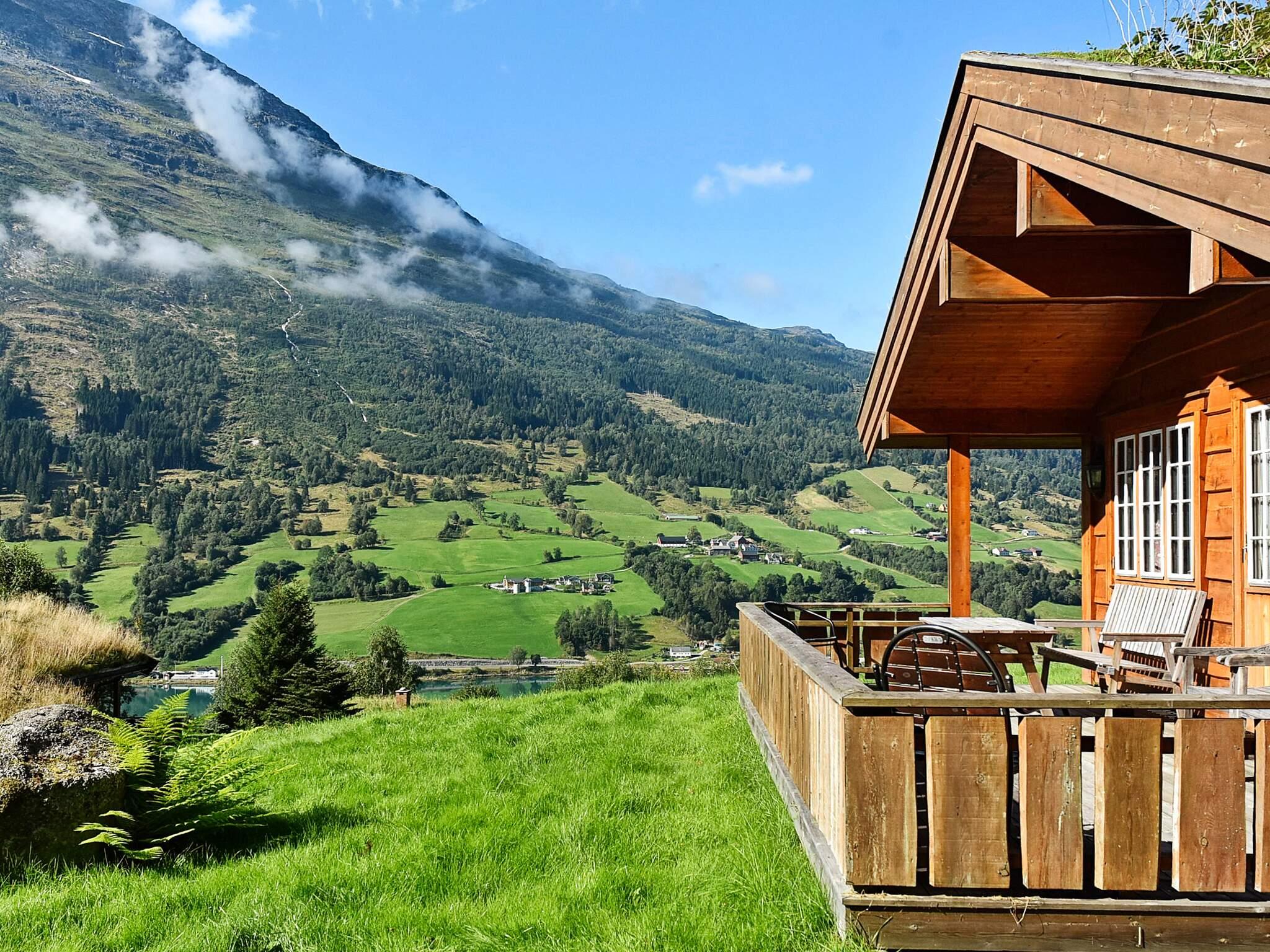 Feriehus med solide norske tremøbler, beliggende på en høyde og med den mest storslåtte og fantastiske utsikt du kan tenke deg.