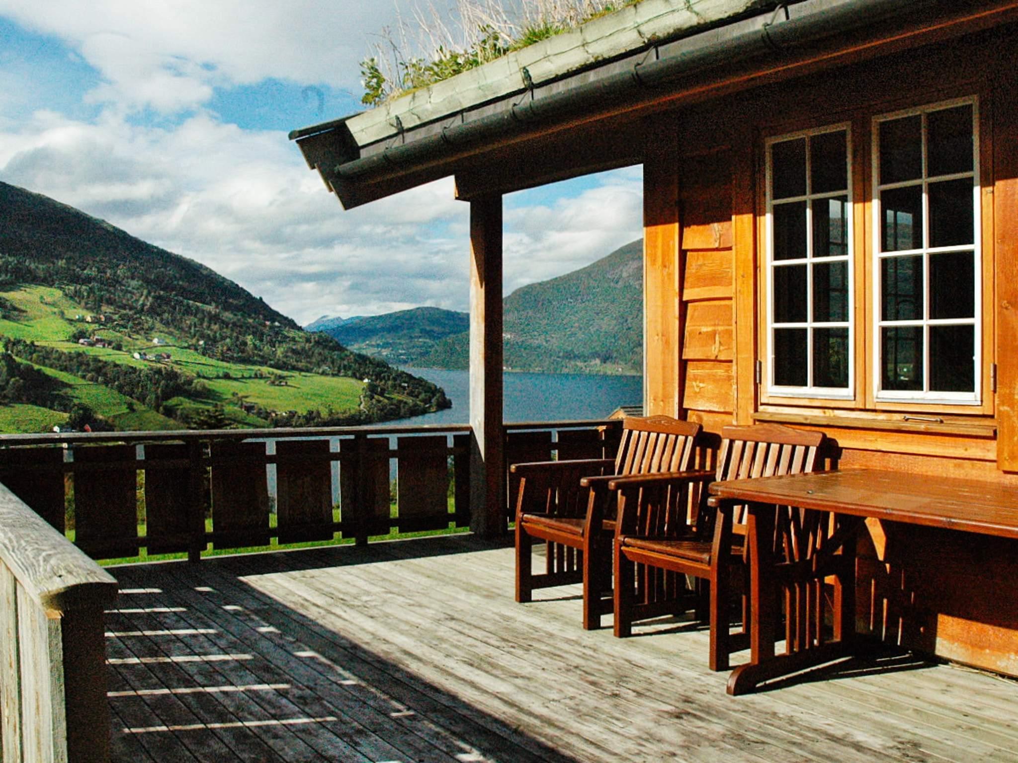 Når du sitter på terrassen eller i stuen her, har du det fulle og hele overblikket over det meste som skjer i Nordfjorden og i Olden. Her kan du kose deg med ettermiddagskaffen og på betryggende avstand nyte synet av de store turistskipene som ankrer opp nede på fjorden. Området rundt hytten er plen og litt skrått terreng. 4 soverom. Hyggelig furuinteriør. Kan leies: Lintøysett inkludert en liten og en stor handduk, NOK 160,- pr person.