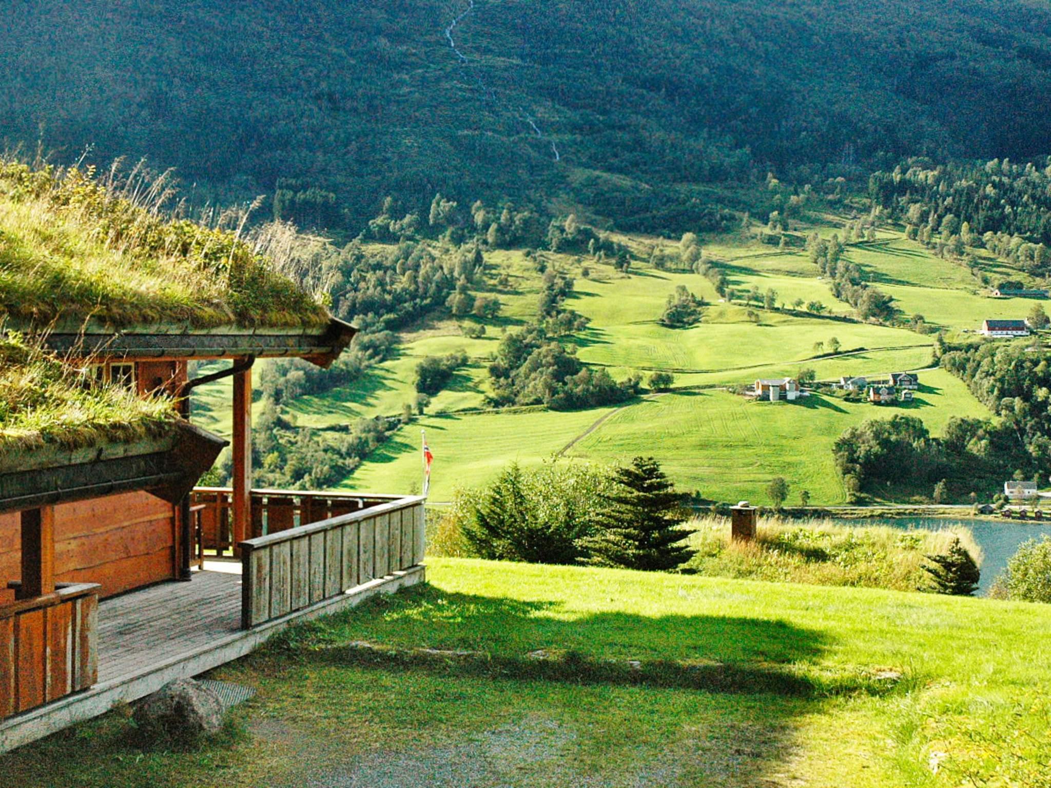 Når du sitter på terrassen eller i stuen her, har du det fulle og hele overblikket over det meste som skjer i Nordfjorden og i Olden. Her kan du kose deg med ettermiddagskaffen og på betryggende avstand nyte synet av de store turistskipene som ankrer opp nede på fjorden. Området rundt hytten er plen og litt skrått terreng. 4 soverom. Hyggelig furuinteriør. Kan leies: Lintøysett inkludert en liten og en stor handduk, NOK 200 pr person.