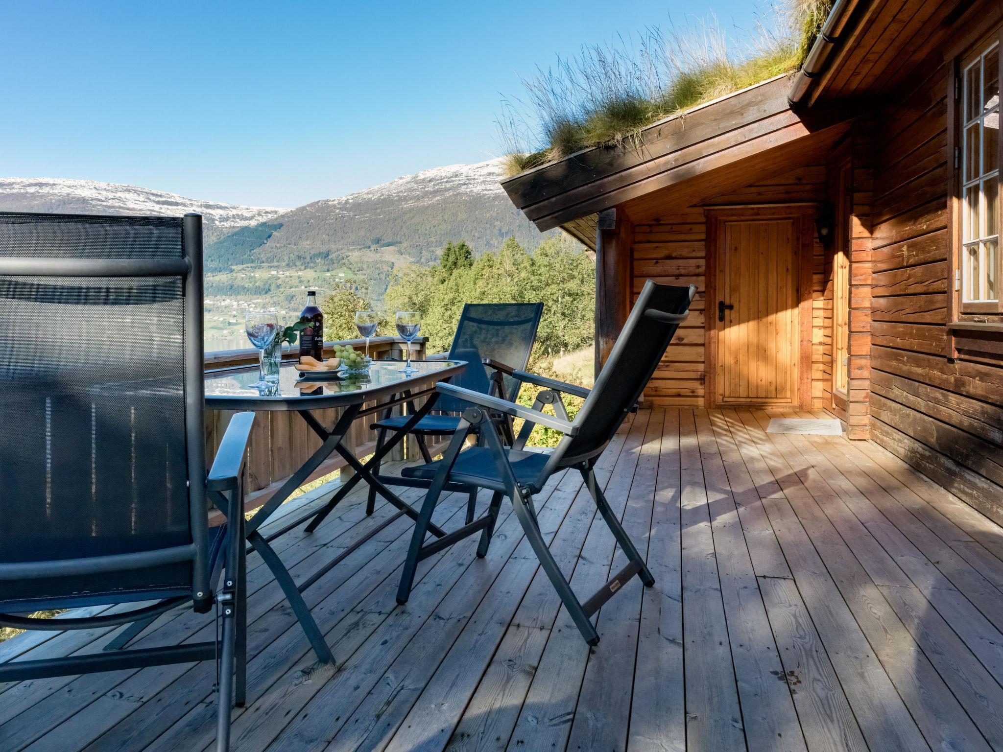 Beautiful timber house "Fjordblick I", 87 m a.s.l.. 2 km from the centre of Olden, 16 km from the centre of Stryn, 55 km from the centre of Sandane, on a slope, 5 km from the lake, 300 m from the fijord. For shared use: natural state property, parking on the premises. Shop 2 km, bus stop "Olden cruise kai" 1 km, railway station "Otta" 202 km, ferry "Bergen" 280 km, indoor swimming pool 16 km. Mountain railway 7 km, fishing possibilities 500 m. Please note: the complex has another 4 houses for rent.