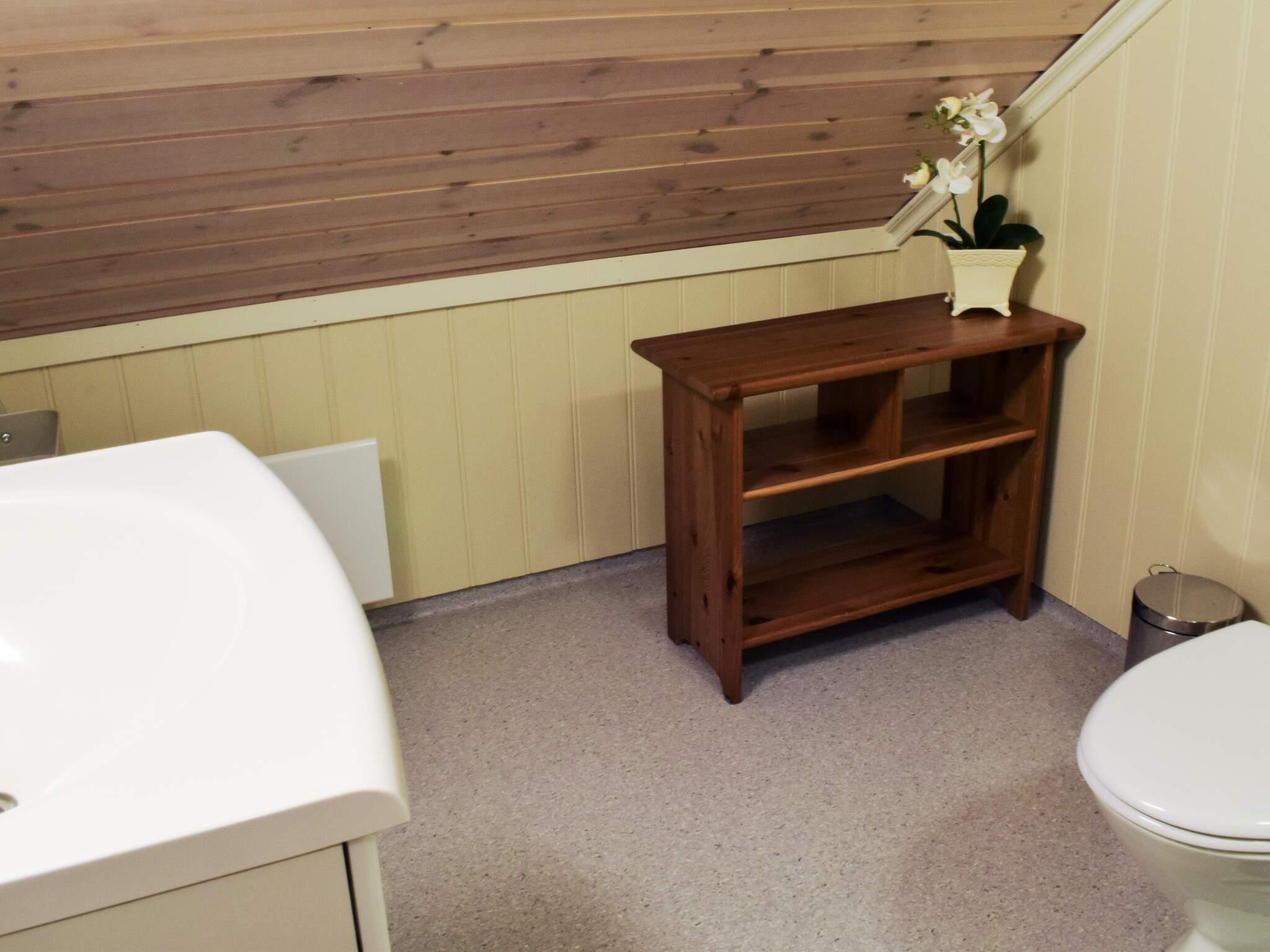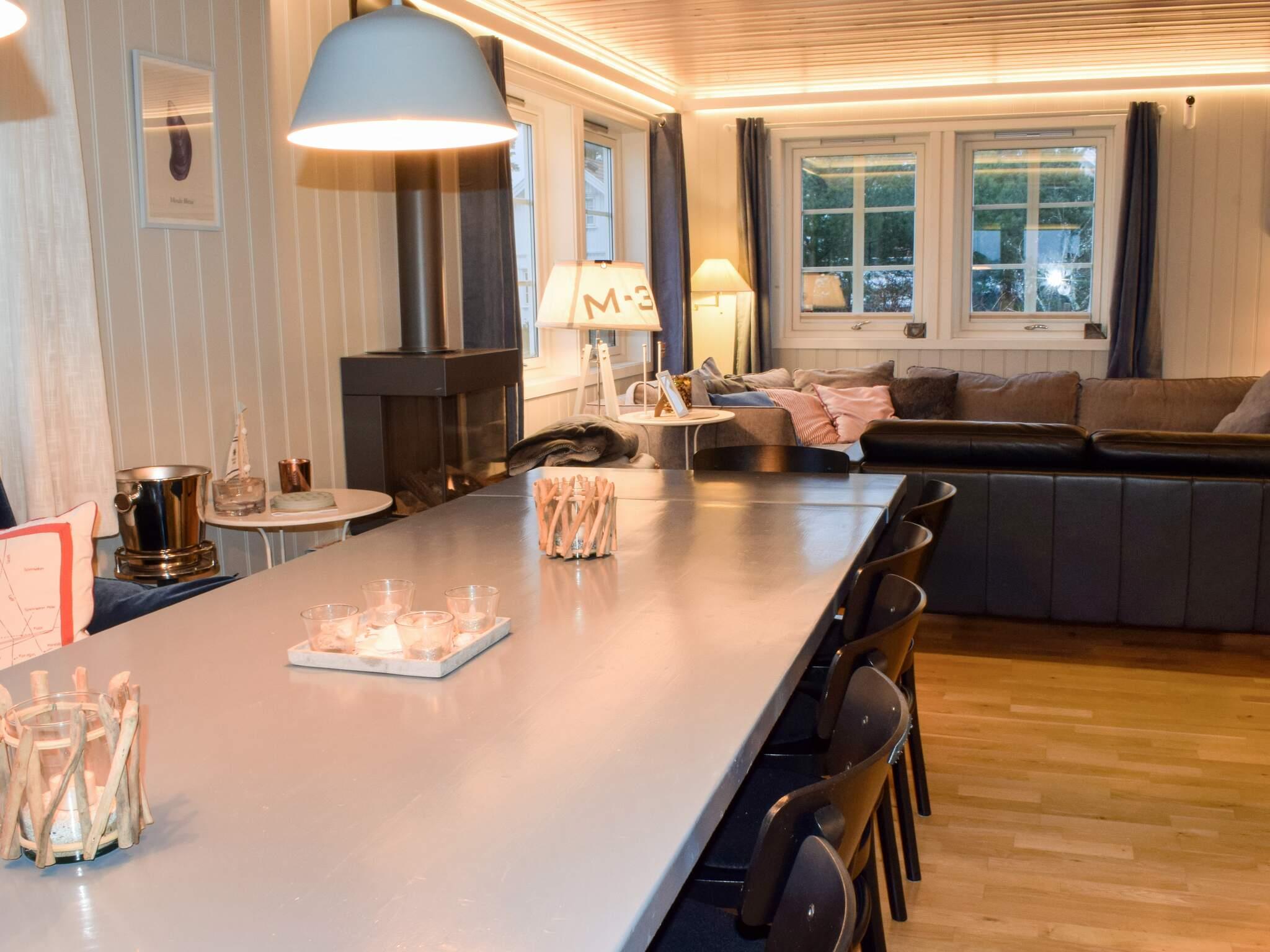 Feriehuset inneholder en stor spisestue, stor sofa-salong med TV i 1.etg og egen sofakrok med TV i 2.etg. Det er kabel-tv og internett i huset. Stort bad nede med varmekabler og eget toalett samt mindre bad oppe med toalett og dusj. Det er også utedusj på terrassen. I første etasje er det ett soverom med dobbeltseng, i andre etasje er det ett med dobbeltseng, ett med enkeltseng som kan trekkes ut til dobbel og et med uttrekksseng og en enkeltseng. Det er også en sovesofa i tv-stuen i andre etasje.