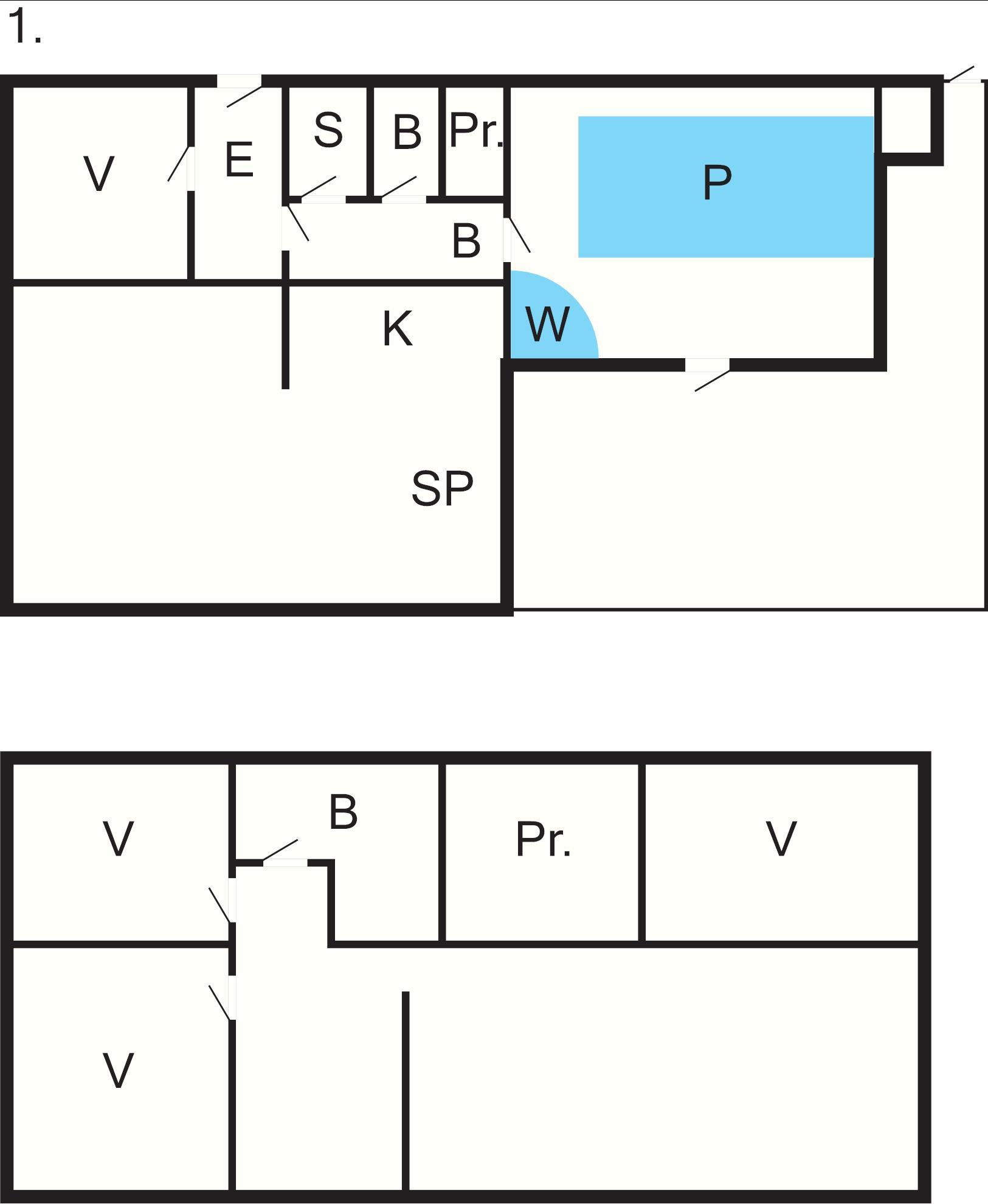 4 Soveværelser: (1DS+1S)+(1DS)+(1DS)+(1DS)