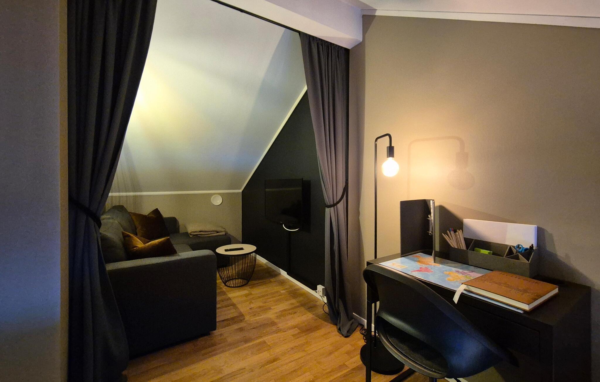 Soverum er adskilt med forhæng