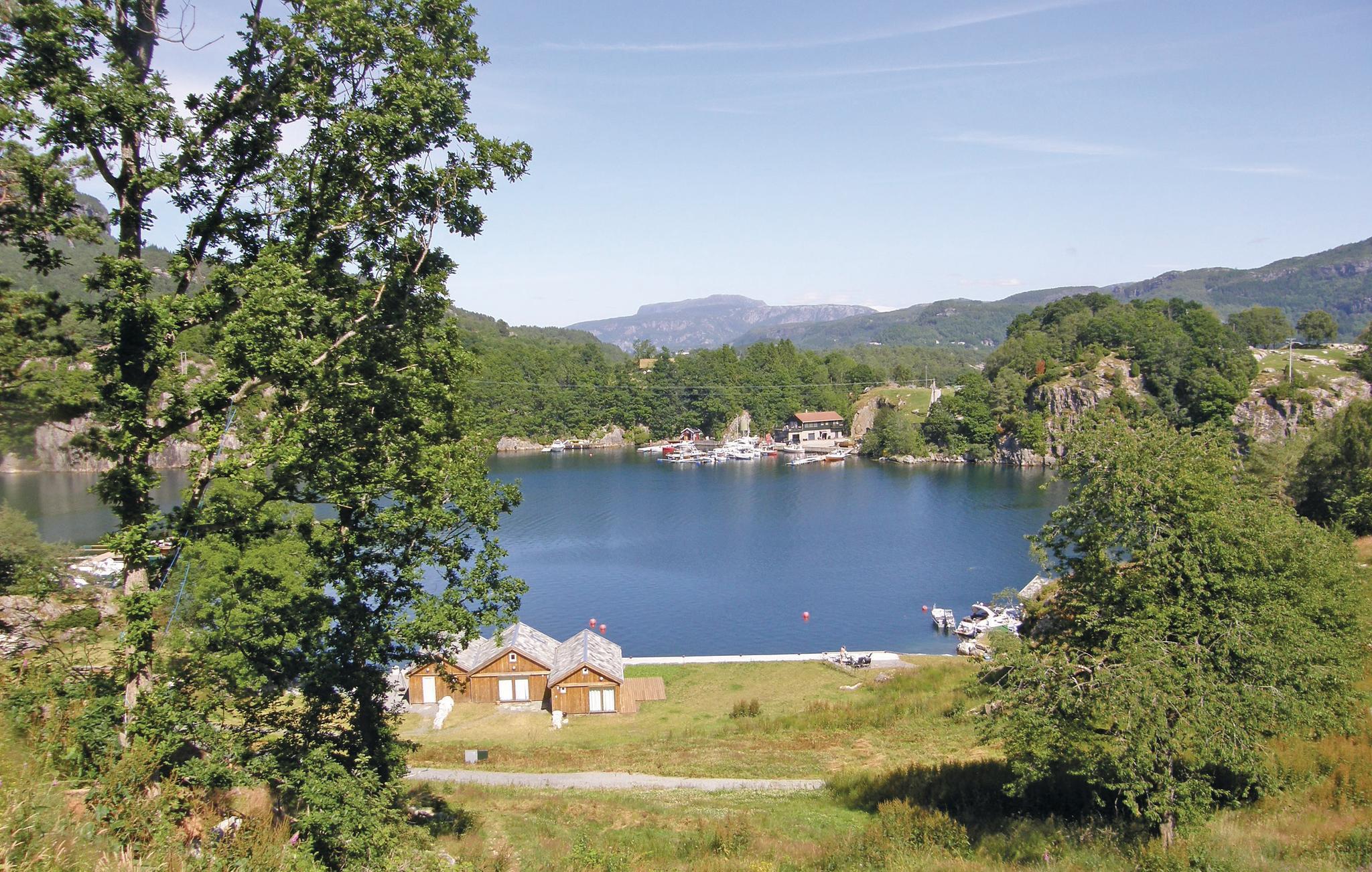 Bo lige ved Sandangervågen i dette dejlige feriehus med anneks. Både ude og inde er alt gennemført stilrent og alt er af høj kvalitet. Huset er smukt og veludstyret indrettet. De store vinduer og glasflader giver et pragtfuldt lys gennem huset. Omkring hus og anneks er der en stor og solrig terrasse hvorfra I kan lade jer opsluge af den betagende udsigt over fjorden. Der er dør fra soveværelset direkte ud på terrassen. Huset ligger på en stor og grøn grund med bl.a. æbletræer hvor I kan spille bl.a. badminton, fodboldt og meget andet. Der er kort til badebroen og volleyballbanen i sandet. I har jeres egen strand på feriehusområdet. Husets båd ligger ved broen parat til fisketure i Fisterfjorden – eller til badeture. Det er nu muligt at køre fra Stavanger til Hjelmeland gennem verdens længste tosporede tunnel. Tag på dagsture til Lysefjorden, Prekestolen og Stavanger hvor I kan opleve de smukkeste sider af Norge.