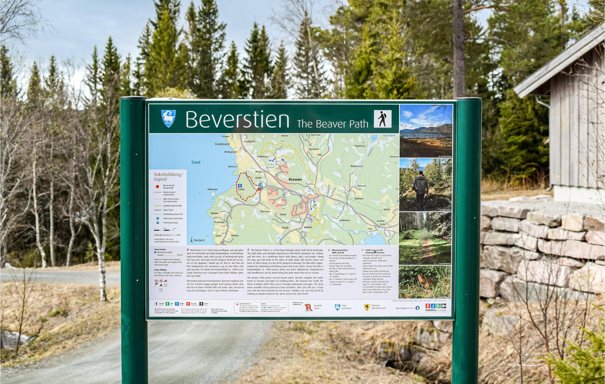 Herfra kan I hurtigt gå til centrum af Totak, men også til strandene langs søen. Der er også et ridecenter i Rauland, Rauland Academy, samt mange vandrestier, som I ikke kun kan opleve om sommeren, men også om vinteren. Er der sne, kan I besøge de smukke skisportssteder i nærheden. I højsæsonen om vinteren kører en skibus til lifterne. Huset er et ideelt udgangspunkt til udflugter i hver sæson. Hvis I er heldige, kan I sige hej til hønsene, og måske ser I lam og får.