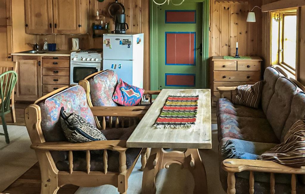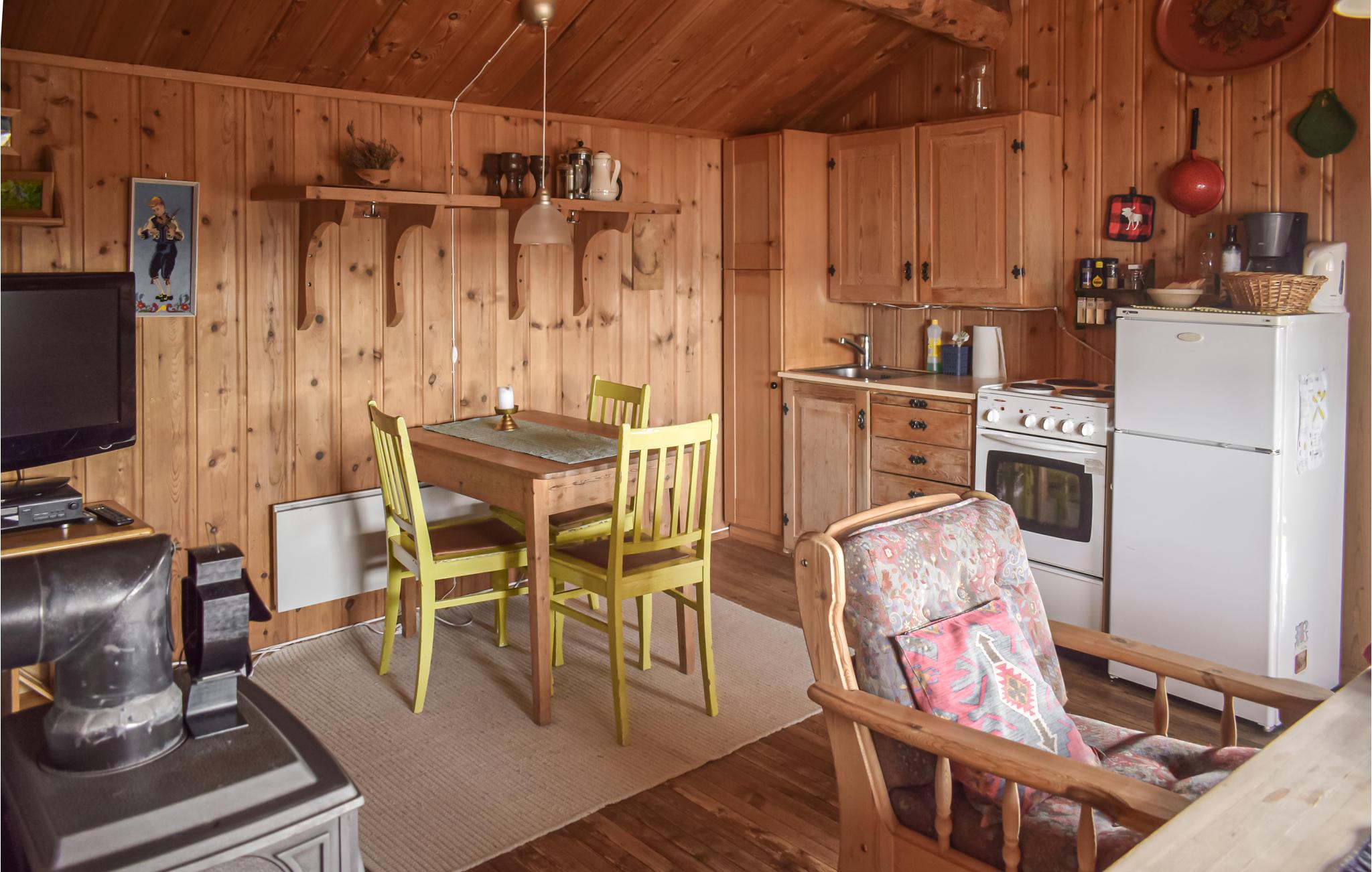 Denne gård har tidligere været brandstation og har en rigtig fin beliggenhed med en smuk udsigt. Feriehuset har både el- og brændefyr. Parkering i bil er i gården, knap 100 meter neden for hytten. Nyd en forfriskende morgenmad på den lille terrasse, mens I planlægger aktiviteterne for dagen og ikke kun indånder den friske luft, men også lader blikket vandre ud over det smukke landskab.