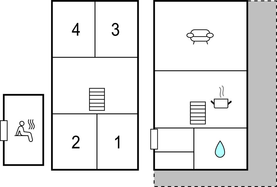 Soveværelse (nr. 2) - 1 Soveplads. (Enkeltseng(e)). 4 Sovepladser. (Etageseng(e)).