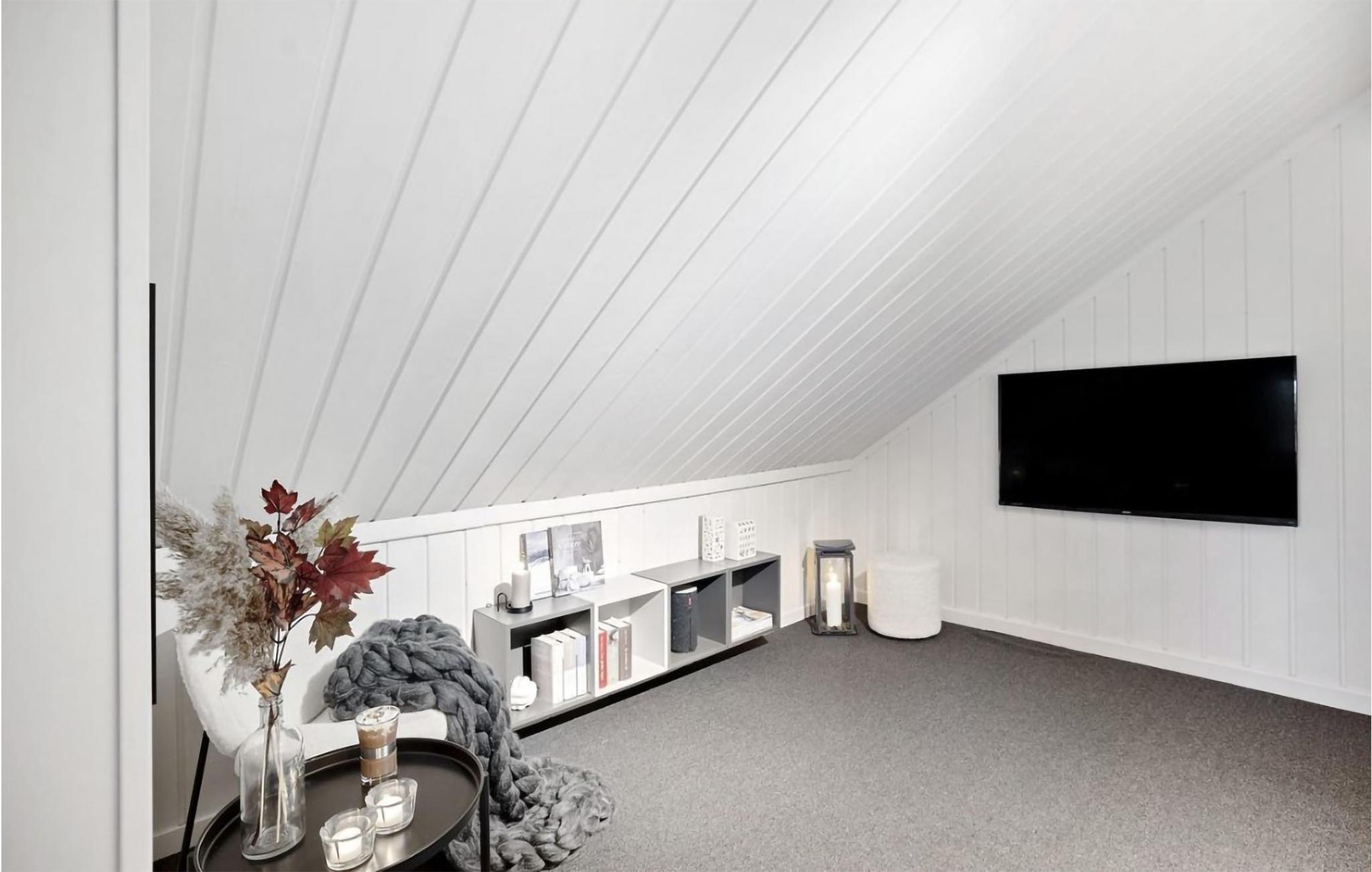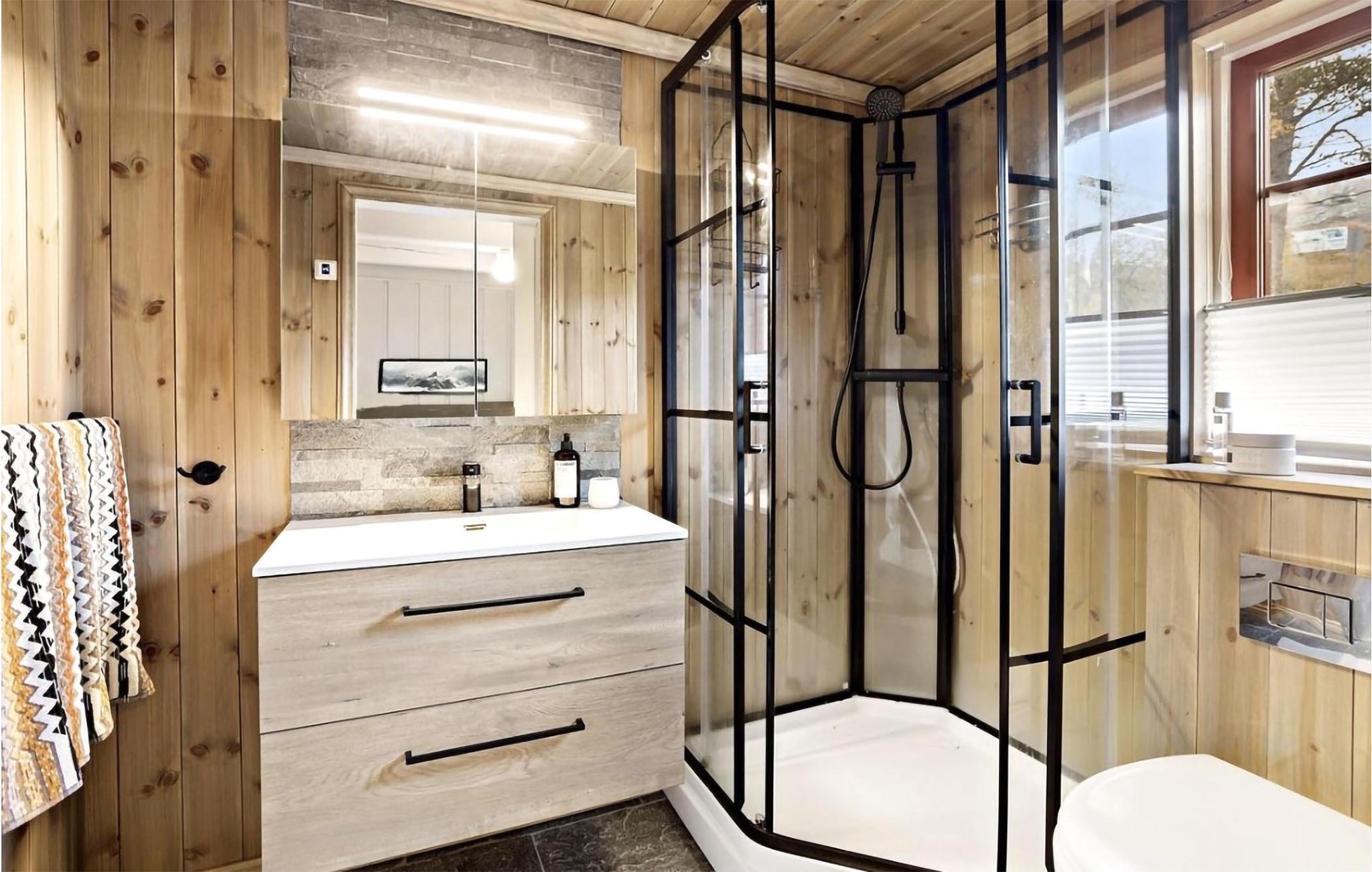 Skønt feriehus med trædetaljer og en moderne og komfortabel indretning.