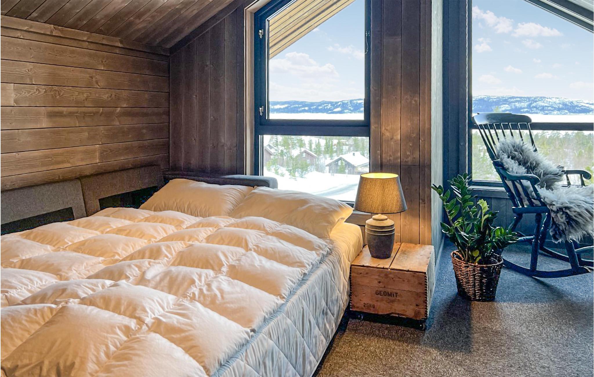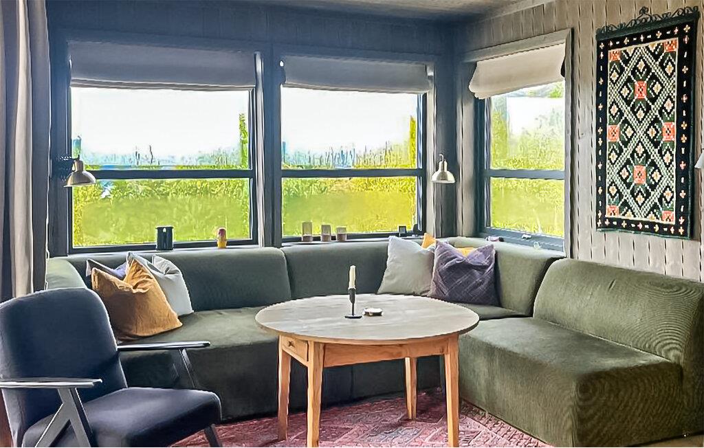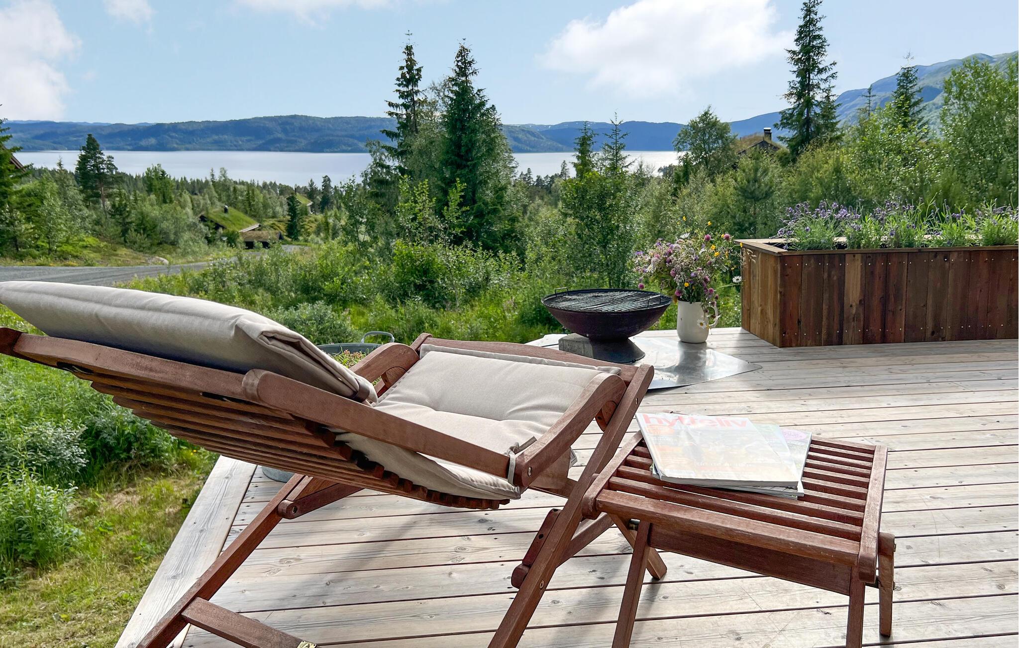 Dette rummelige feriehus nær Totak-søen er ideel til to familier, der er venner og leder efter naturoplevelser. Træelementerne, de varme farver, de store vinduespartier, det høje loft og de komfortable sofaområder bidrager til en stemning. Nyd jeres friskbryggede kaffe i spisekøkkenet med en smuk udsigt og forhandle det daglige program. Efter en udmattende vandretur kan I slappe af i saunaen og beundre solnedgangen fra terrassen. begynd jeres vandretur tidligt om morgenen og følg vandrestien. Observer det rige dyreliv og match blade og planter. Hvem sniger sig mest stille gennem skoven? Saml bær og svampe til aftensmaden.