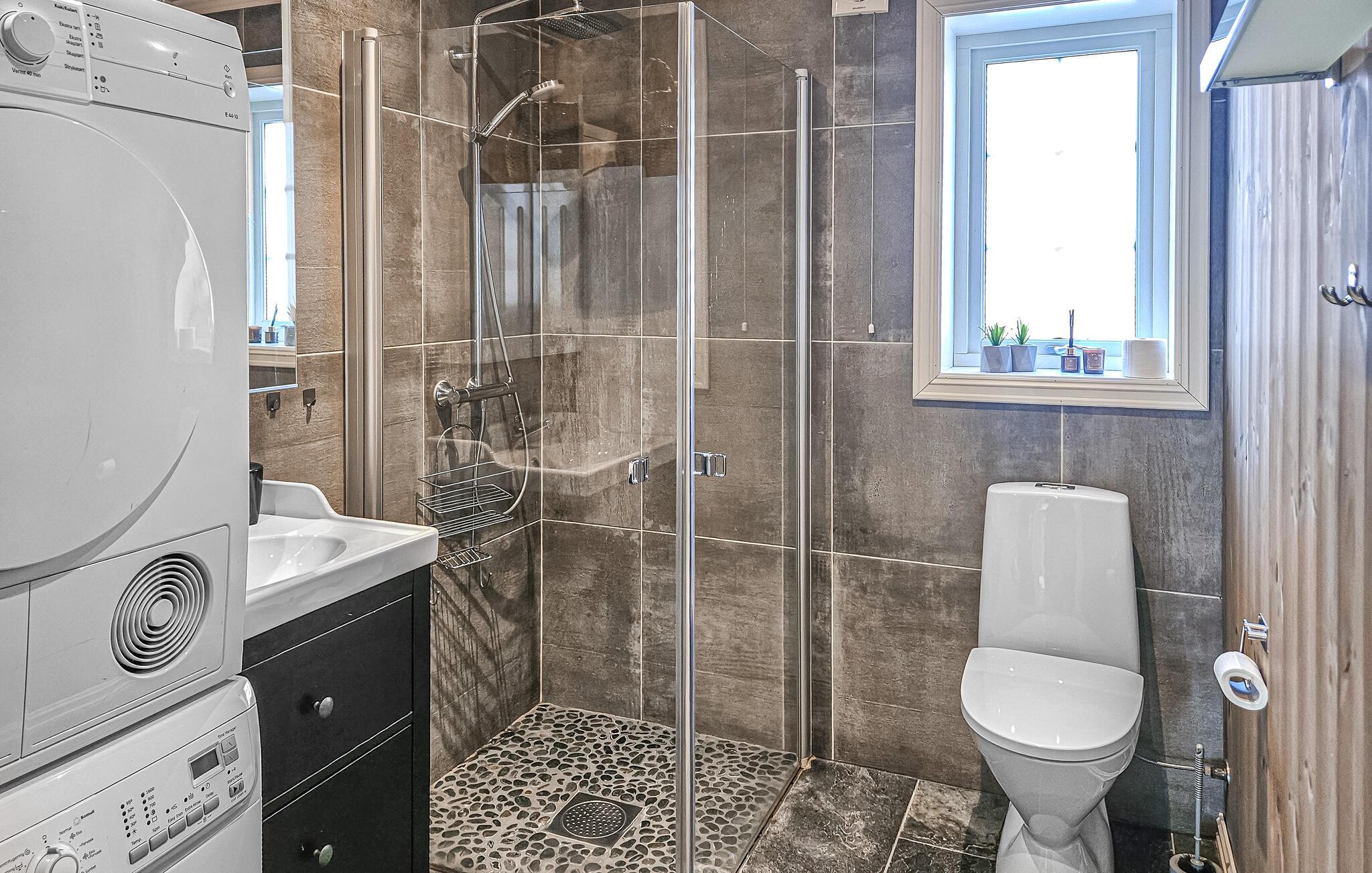 Træd ud på den rummelige terrasse, tag en dyb indånding og beundr de fredelige omgivelser. Hytten ligger i en lille bebyggelse med traditionelle græstage, der smelter harmonisk sammen med landskabet.