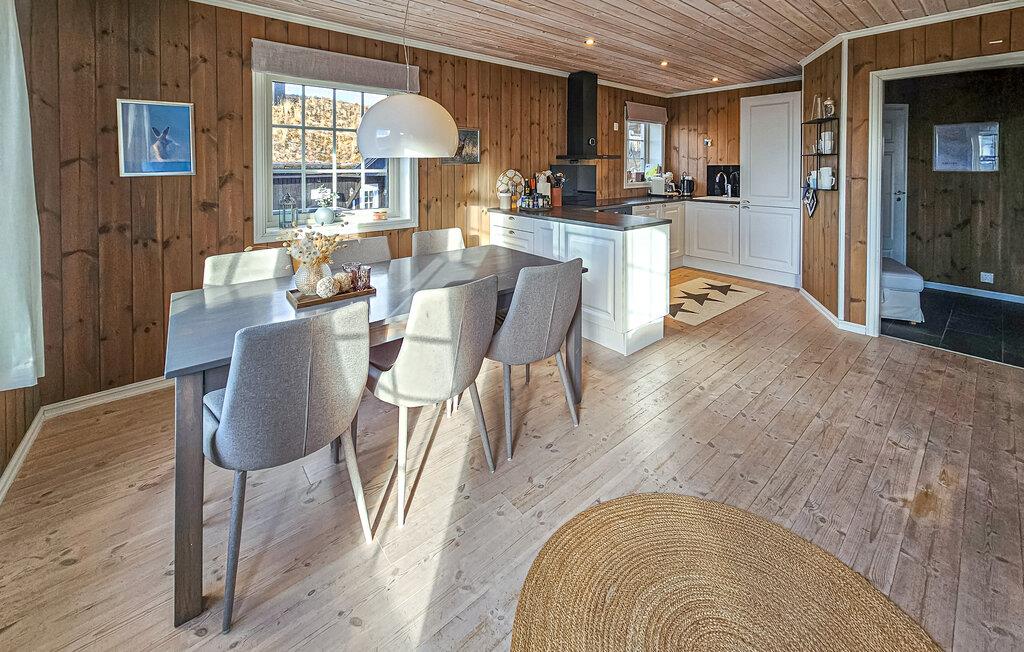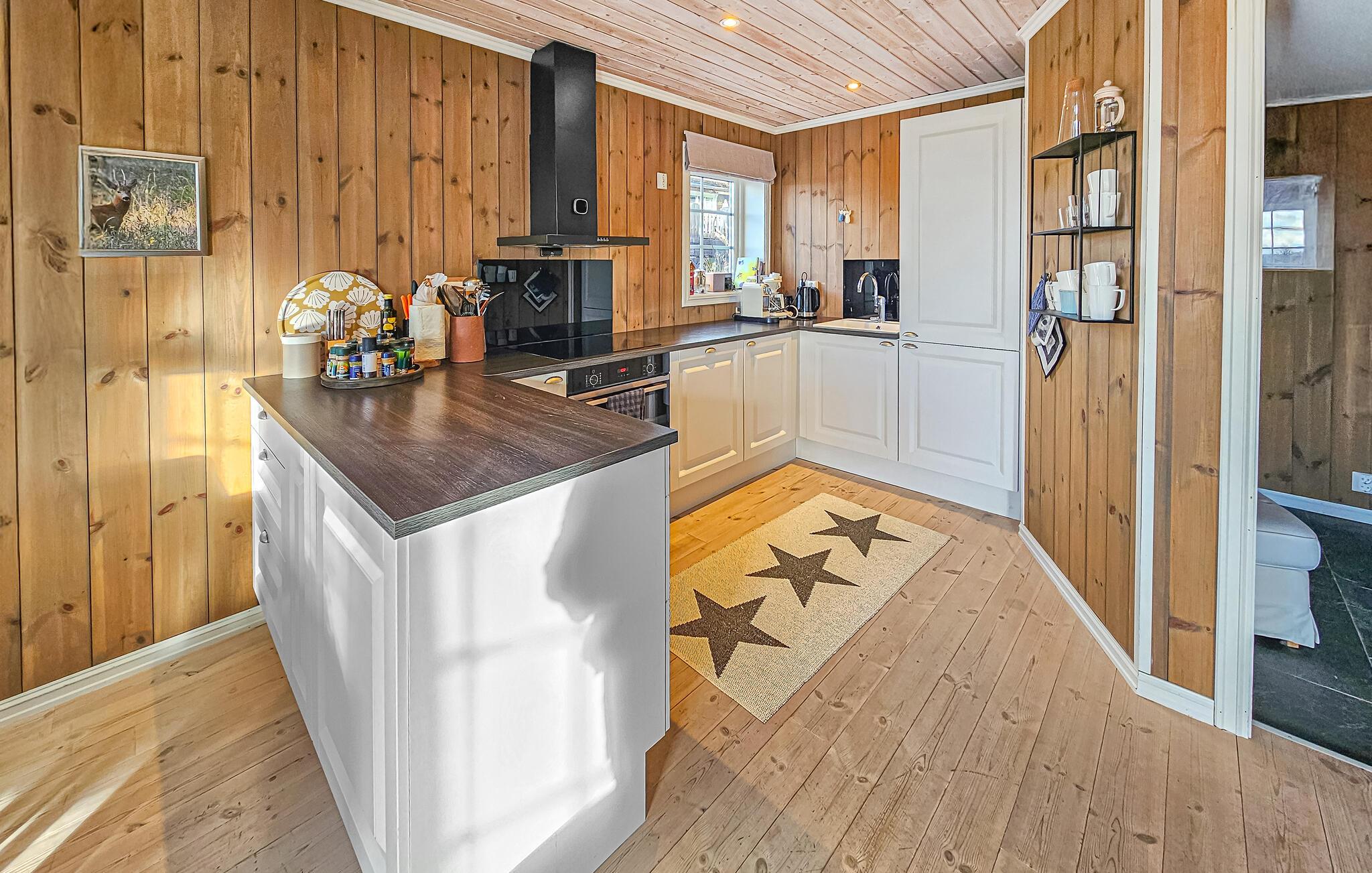 Nyd jeres ferie i denne stilfulde hytte, der harmonisk kombinerer hygge, komfort og nordisk design. Omgivet af frisk bjergluft og blid ro finder I det ideelle sted til afslapning og aktive dage i naturen. Læn jer tilbage i de store sofaer ved brændeovnen og nyd de naturlige omgivelser gennem panoramavinduerne. Trævæggene og de lyse gulve skaber en naturlig atmosfære, der formidler en følelse af tryghed. Lav mad i det moderne køkkens rummelige køkkenø og rigelige plads og nyd jeres måltider ved spisebordet med udsigt over bjergene.