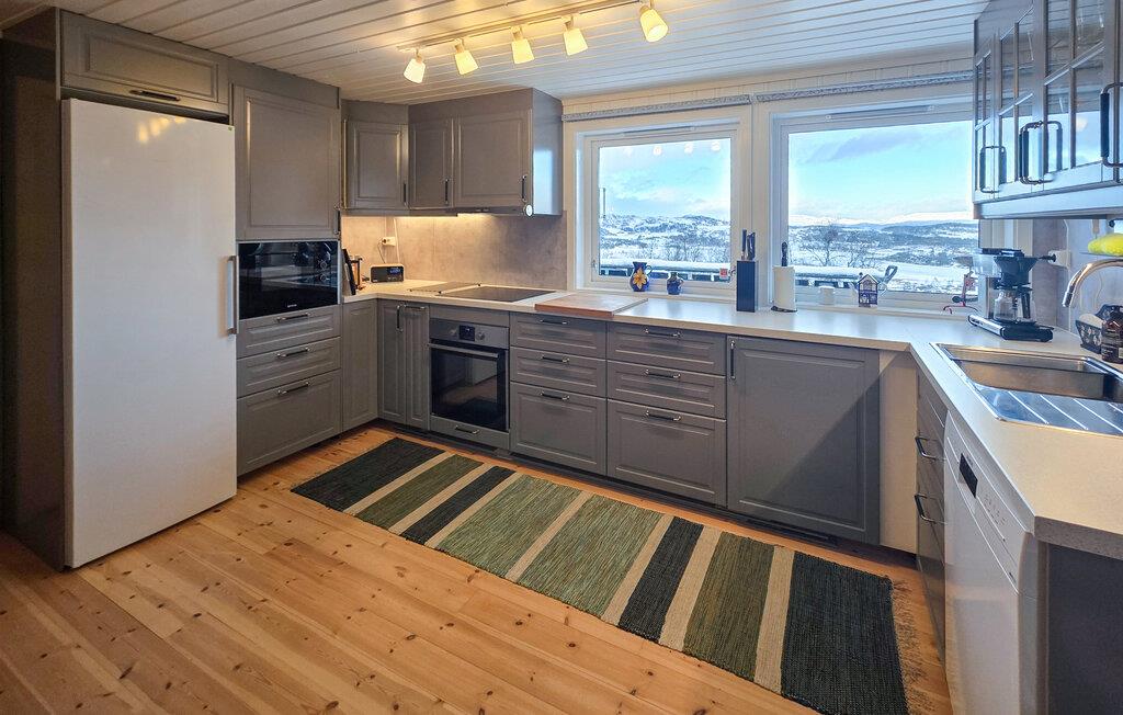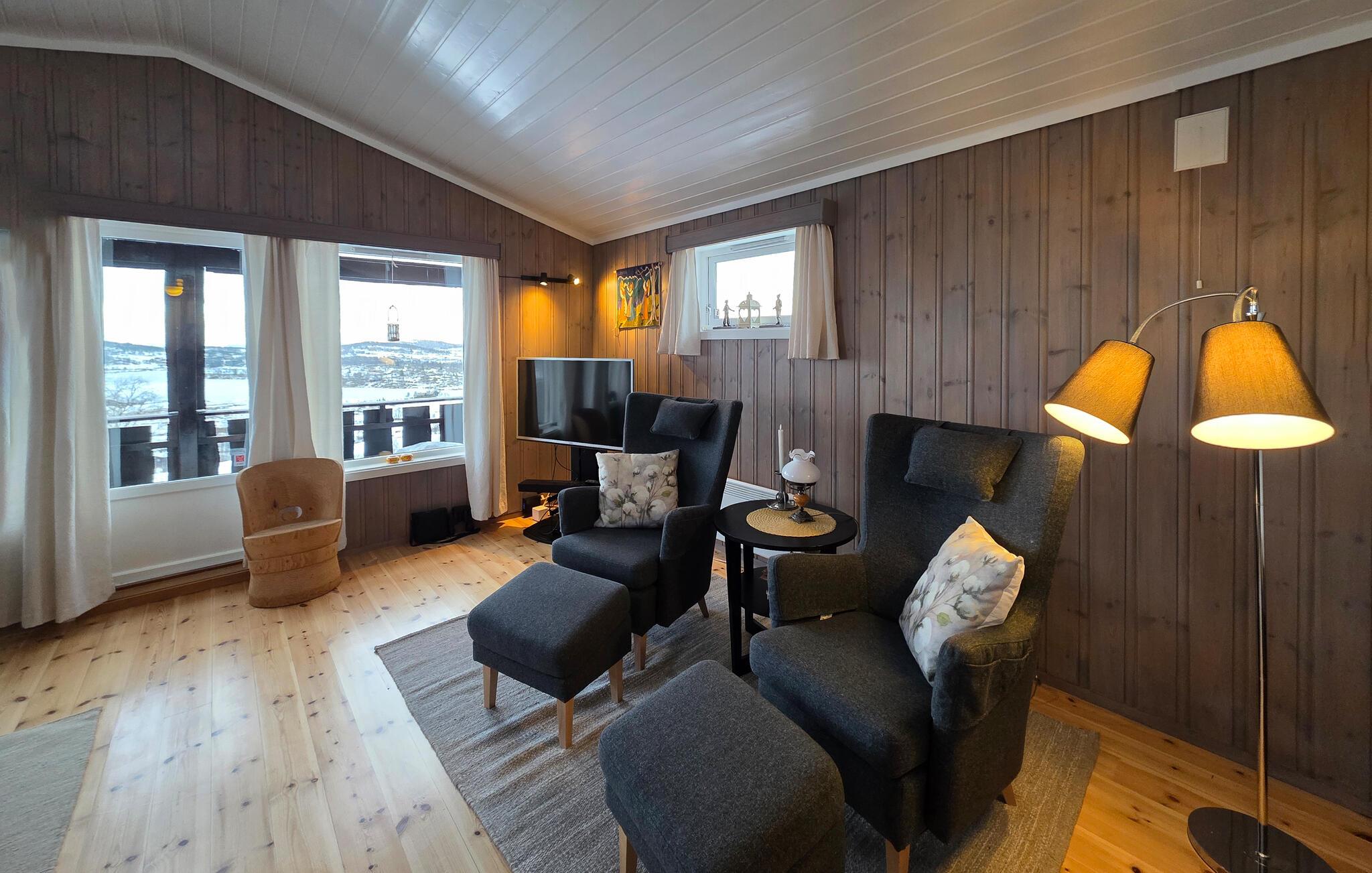 Dette hus har en varm og indbydende atmosfære. Varmt træ, komfortable lænestole og en sofa vil få jer til at føle jer hjemme. Nyd en kop kaffe, mens I nyder den fantastiske udsigt over det bølgende landskab og lytter til god musik. Eller tilbered lækre måltider sammen i det moderne køkken.