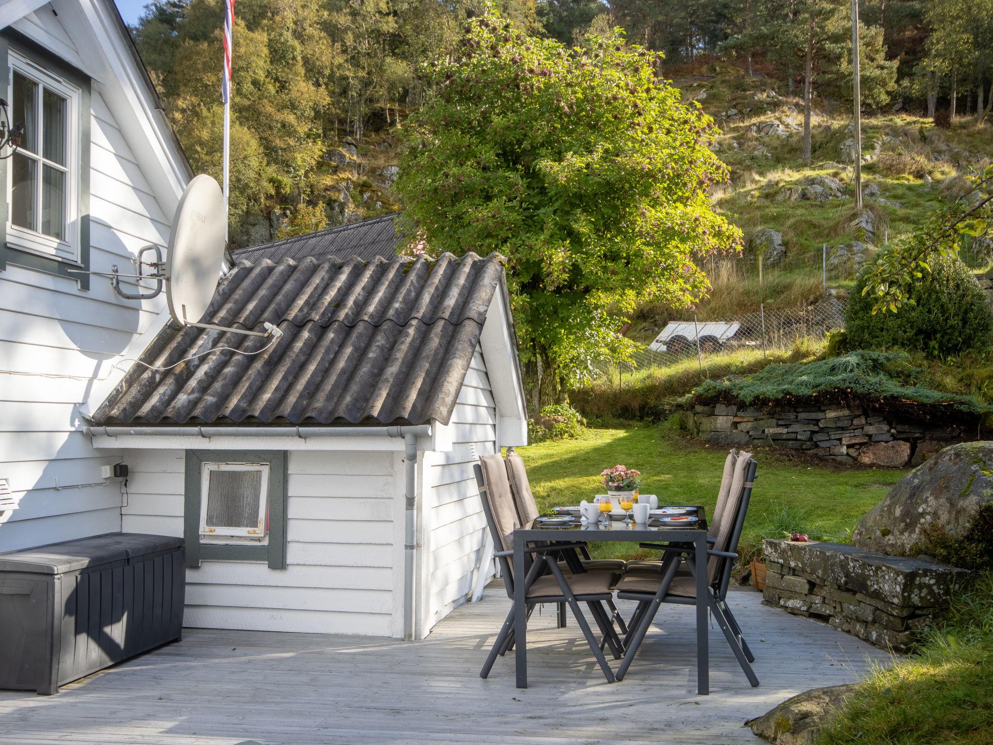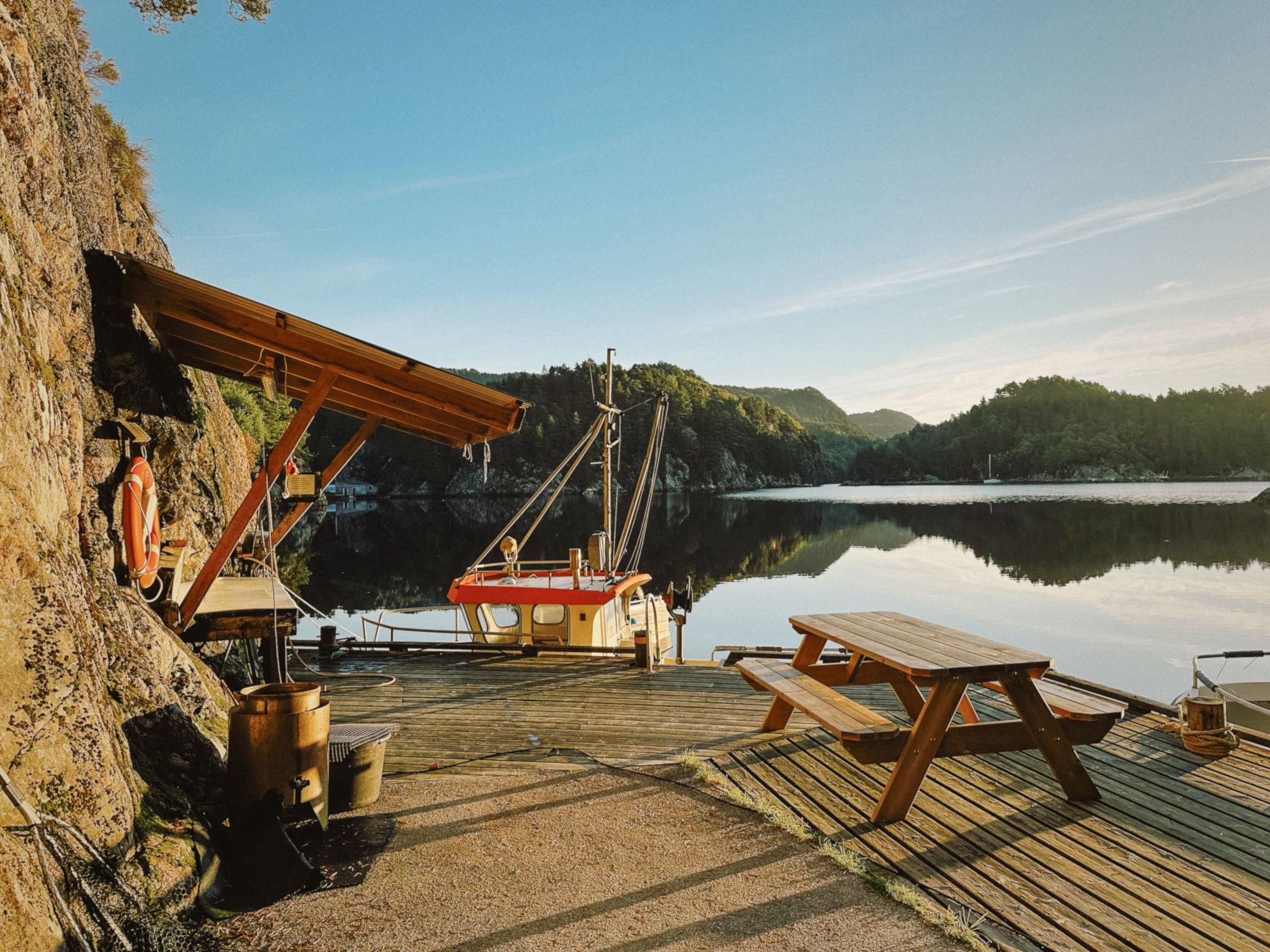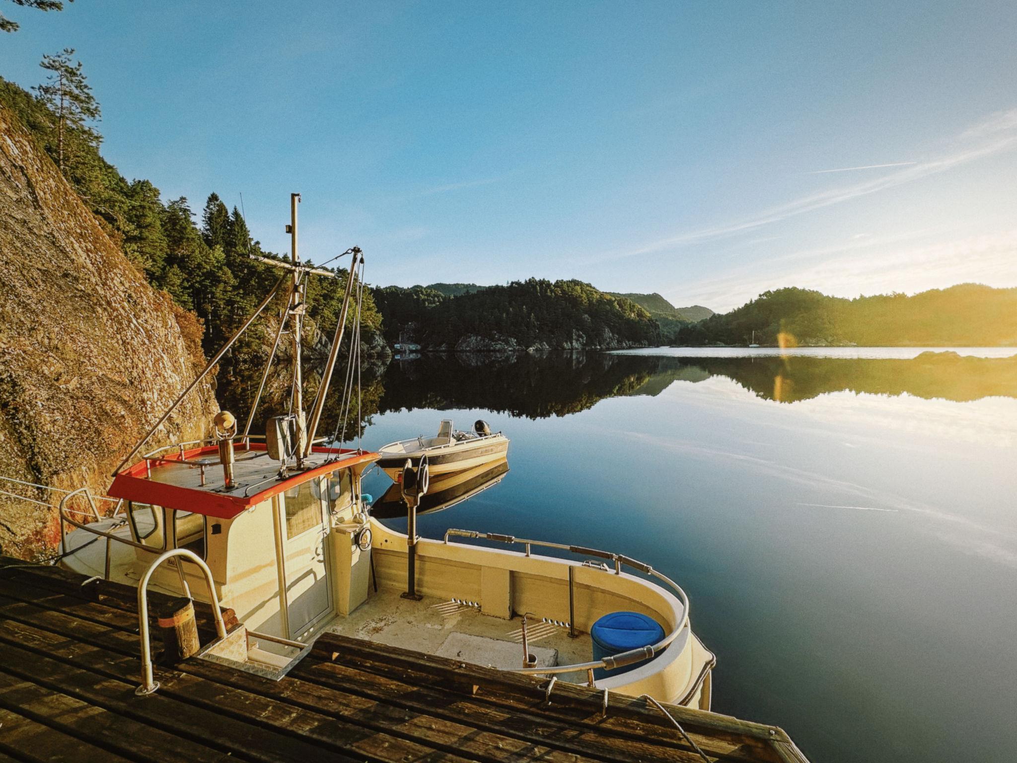 Certified fishing house "Soltun", built in 1926, renovated in 2004. In the hamlet Flygansvær 8 km from the centre of Bruntveit, 44 km from the centre of Leirvik, 67 km from the centre of Bergen, on a slope, 250 m from the fijord, in a cul-de-sac. Fish-processing table. Private: natural state property with meadow. Bathing jetty, fish-processing table. Motor boat (on order), parking on the premises. Shop 8 km, supermarket 20 km, bus stop "Flygansvær Snuplass" 200 m, ferry "Bergen" 67 km. Fishing possibilities 1.5 km. Please note: private mooring. Animals in the neighbourhood. Covered table for fish gutting with running water available.