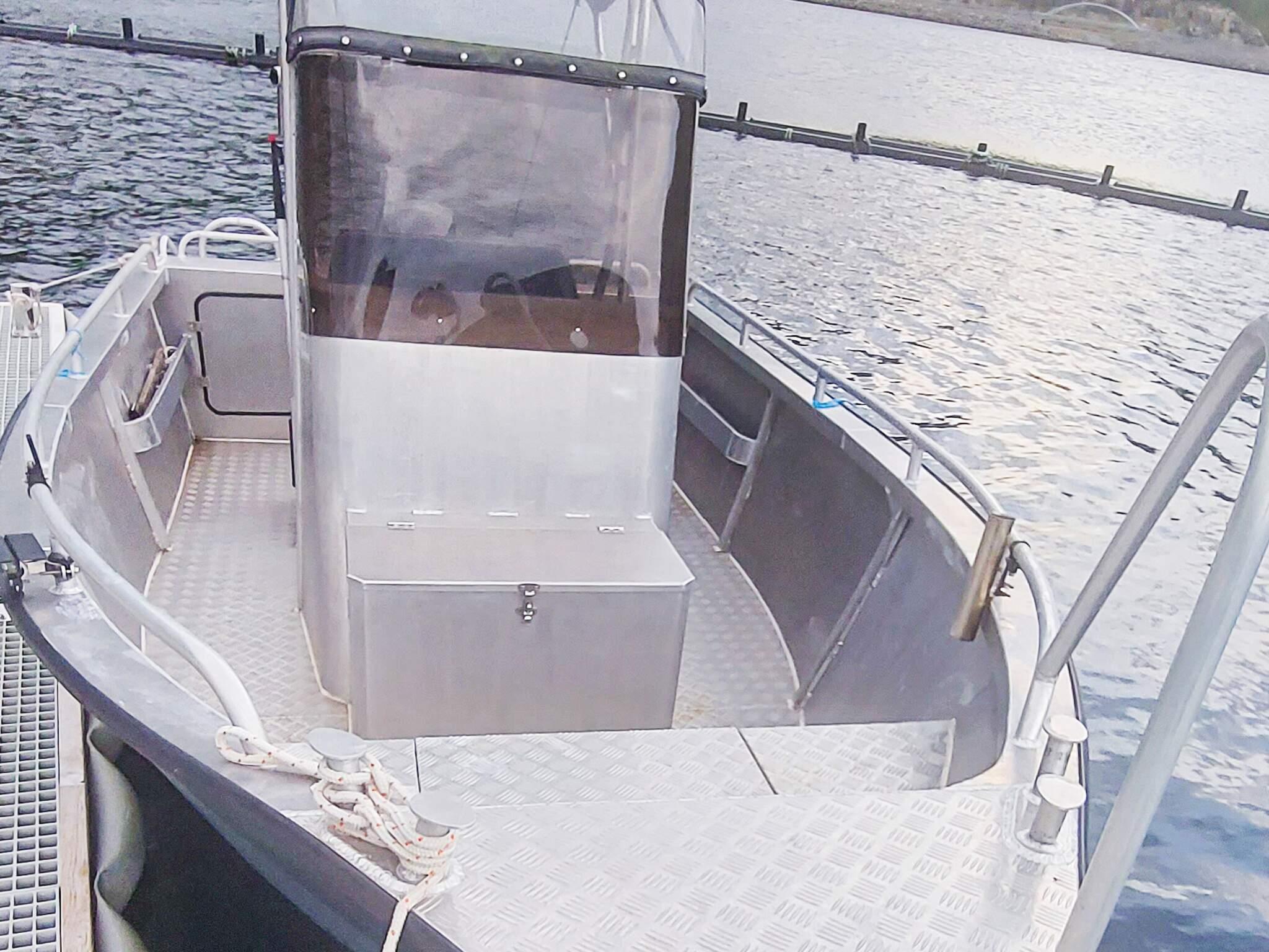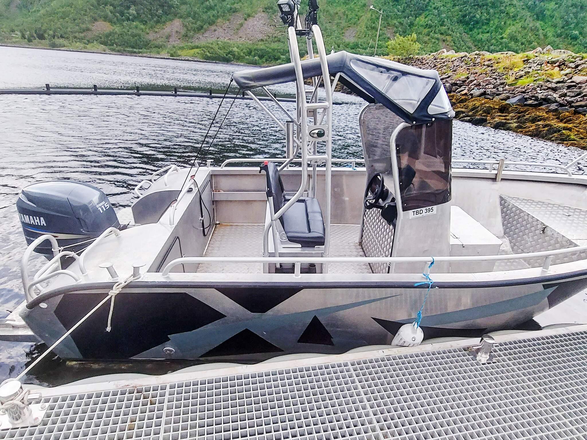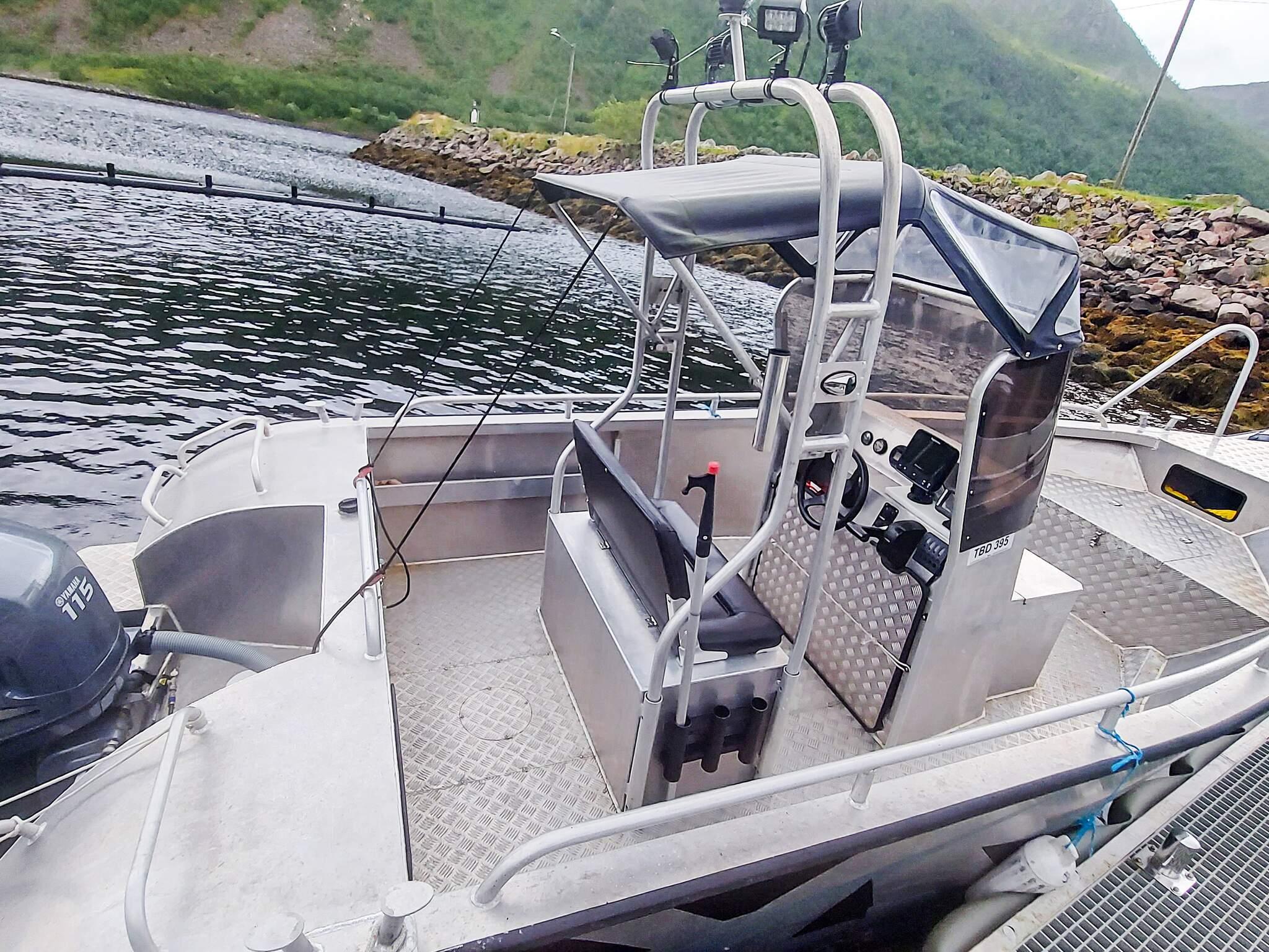 1x 19 fots åpen båt med styrekonsoll og 115 hk motor, kartplotter, gps, ekkolodd og 6 stangholdere.