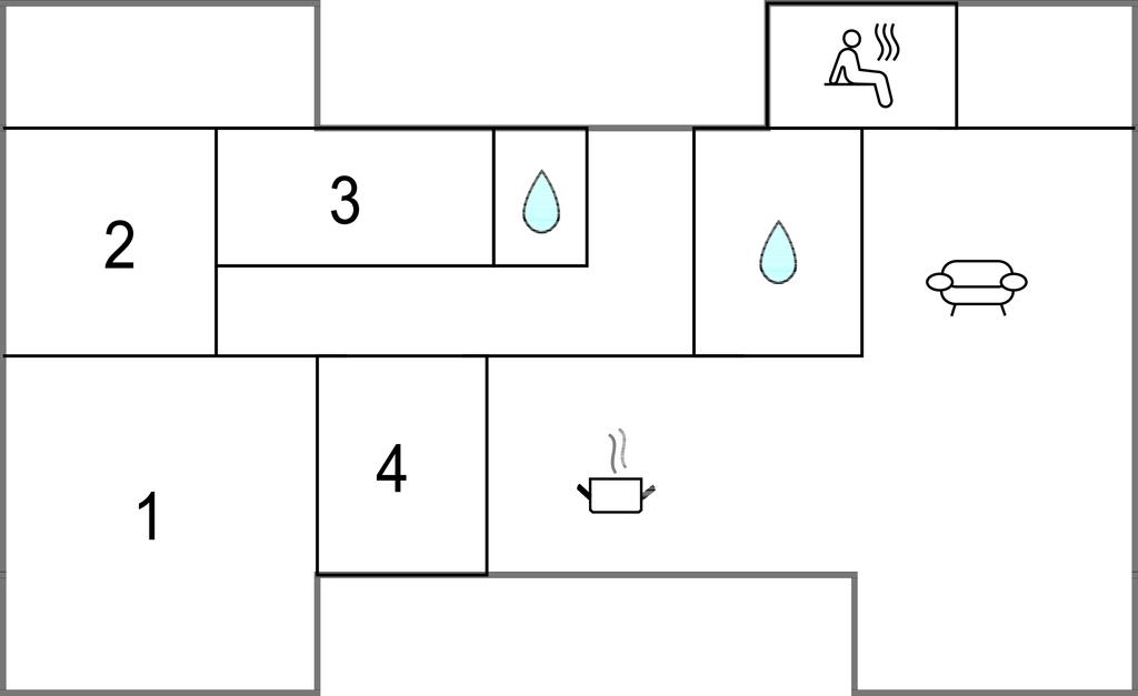 Badeværelse (nr. 1) - WC. Varmt og koldt vand. Bruser og badekar