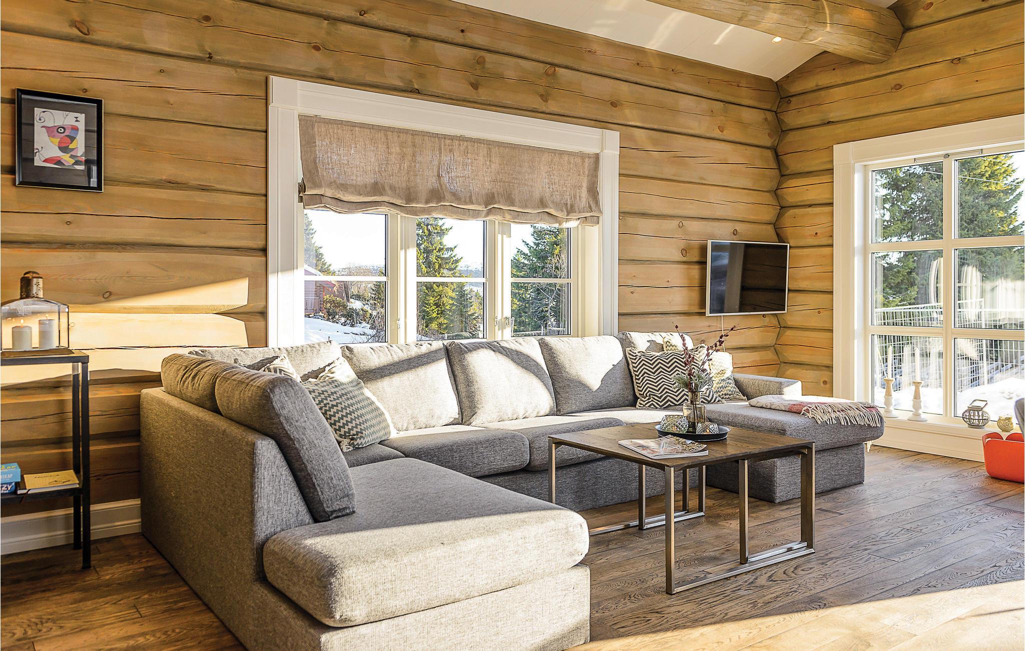 Meget flot feriehus i træ midt i hjertet af Sjusjøen med god plads til hele familien.