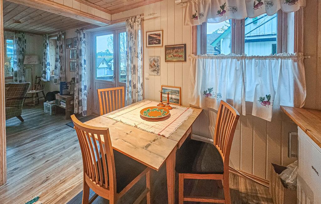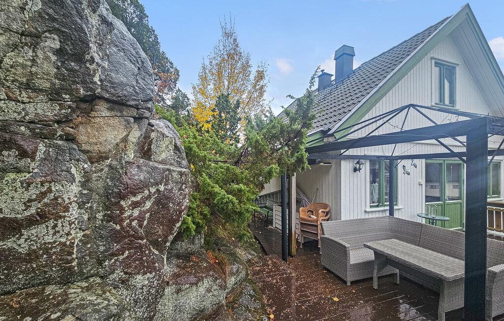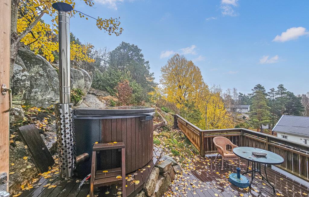 Oplev en hyggelig ferie i dette charmerende feriehus med vildmarksbad. Dette velholdte og indbydende feriehus grænser op til et naturreservat og tilbyder jer et komfortabelt feriehjem, mens I udforsker den fortryllende region omkring Østfold. Glæd jer til harmoniske måltider ved det indbydende spisebord og hyggelige timer med duftende te ved pejsen. Efter en lang dag udenfor kan I hygge jer sammen i stuen eller fordybe jer i en god bog. Afhængigt af vejret kan I nyde en åben eller overdækket terrasse til afslapning i den friske luft. Tænd vildmarksbadet og lyt til de mange fugles kvidren, mens I nyder beroligende bade, der giver en naturnær oplevelse. Udforsk de nærliggende byer Halden og Sarpsborg, og slentr gennem den charmerende gamle bydel i Fredrikstad. Besøg den historiske Fredriksten Fæstning, padle i Haldenkanalen, eller tilbring en dag på stranden.