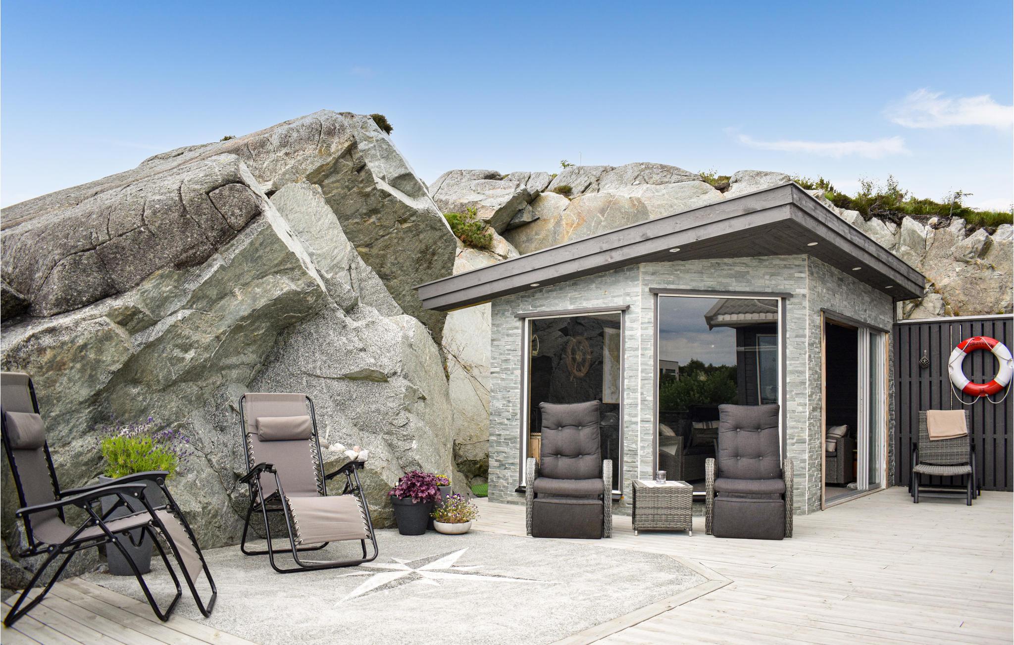 Dette feriehus ligger smukt på vestkysten mellem Stavanger og Bergen. Huset byder på et lyst interiør i maritim stil med komfortable faciliteter, så I ikke kommer til at mangle noget. Træd ud på de store terrasser, hvor I kan nyde godt af de gode solforhold. Oplev flotte solnedgange fra de smukke havemøbler, mens I skuer ud over Bømlafjorden. I nærheden finder I gode bade- og fiskemuligheder på fjorden.