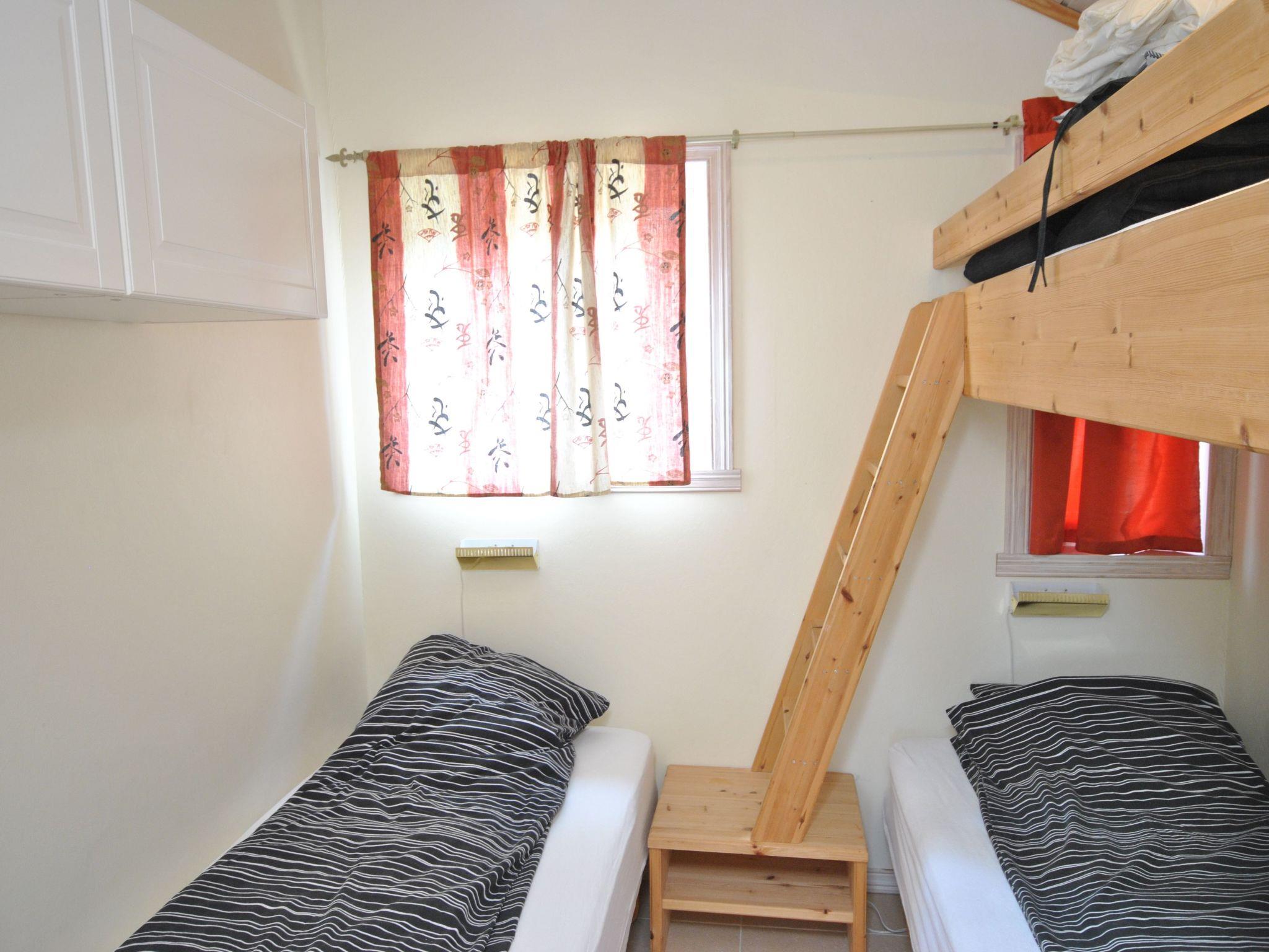 The house can accommodate up to five people and has an open living and dining room with a kitchen, a sofa, two armchairs, a coffee table, a flatscreen satellite TV and a dining table with chairs. The kitchen unit is fully-equipped with all the necessary appliances. The two bedrooms have two single beds and a bunk bed, as well as a further single bed. The bathroom consists of a shower, washbasin, toilet, washing machine and dryer. There is underfloor heating in the bathroom and free Wi-Fi is available.